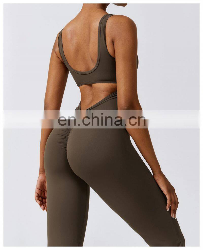 Big U Back Design Butt Lifting Jumpsuits Custom Workout Wear Gym Fitness Ribbed Bodysuit Women Seamless One Piece Yoga Jumpsuit