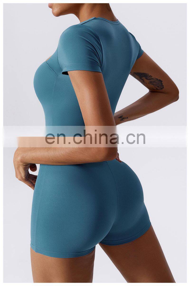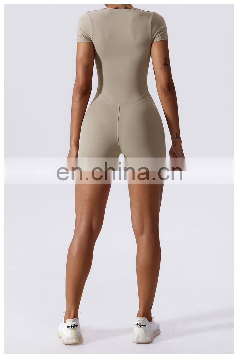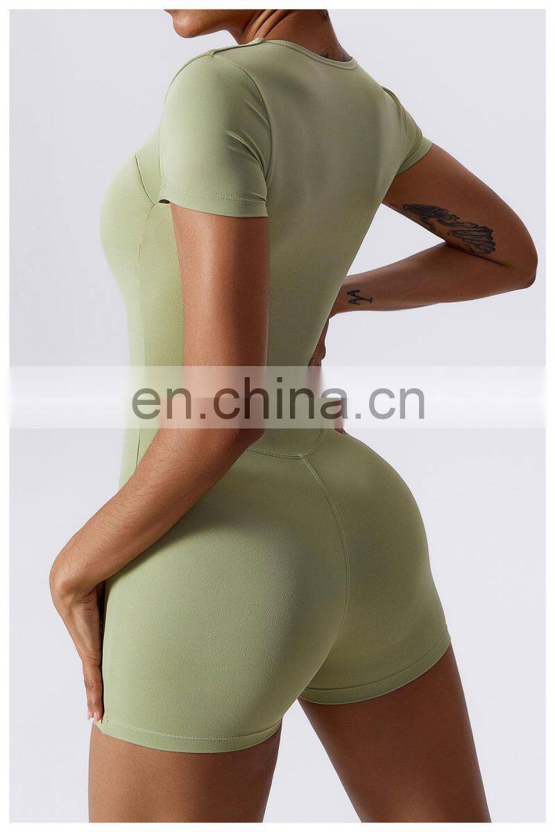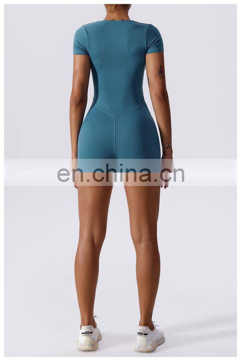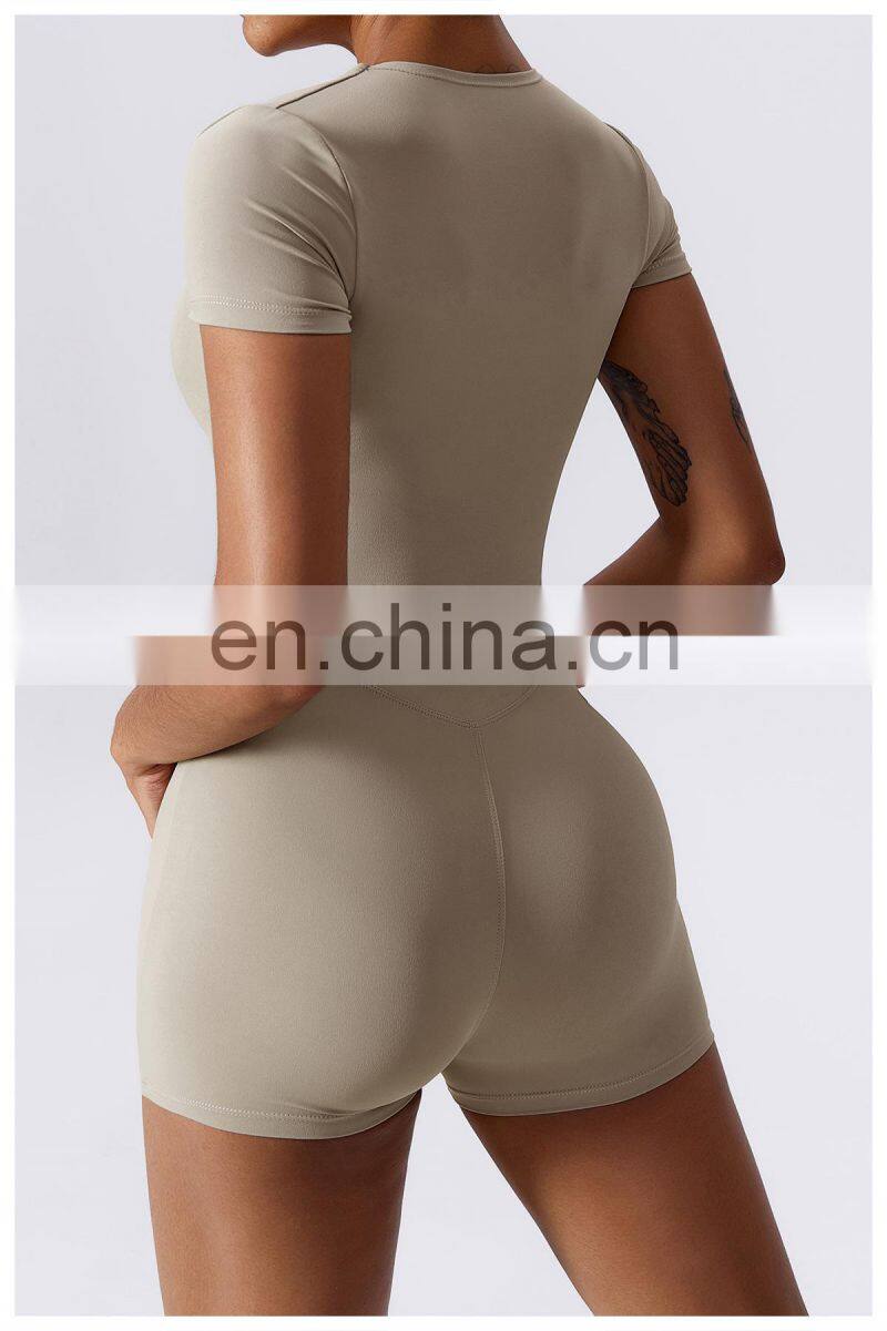 2024 Yoga Short Zip Jumpsuits High Quality Sexy Fashion Wear Fitness Sports Bodysuit Gym Women One Piece Jumpsuit