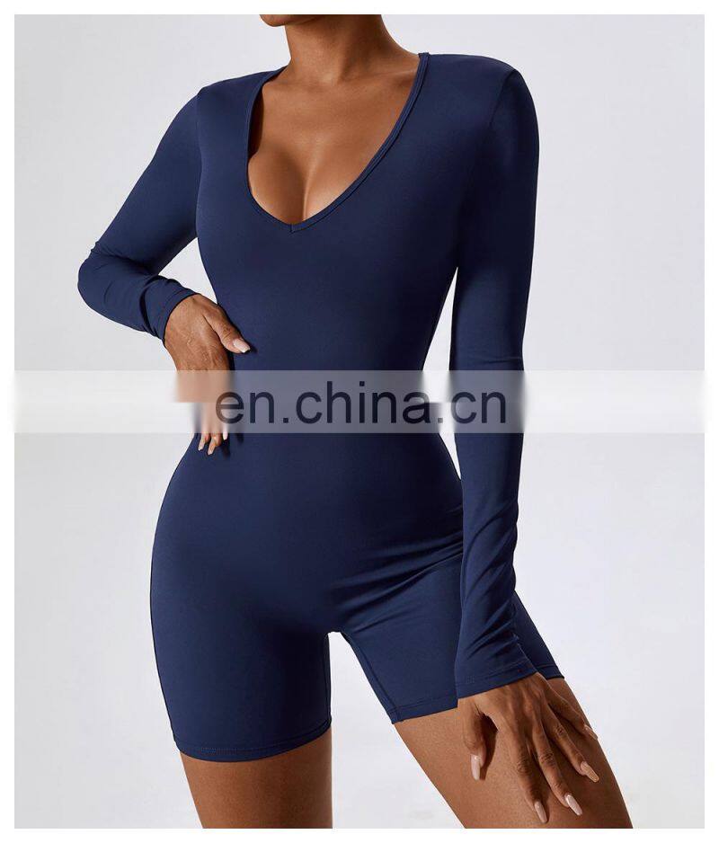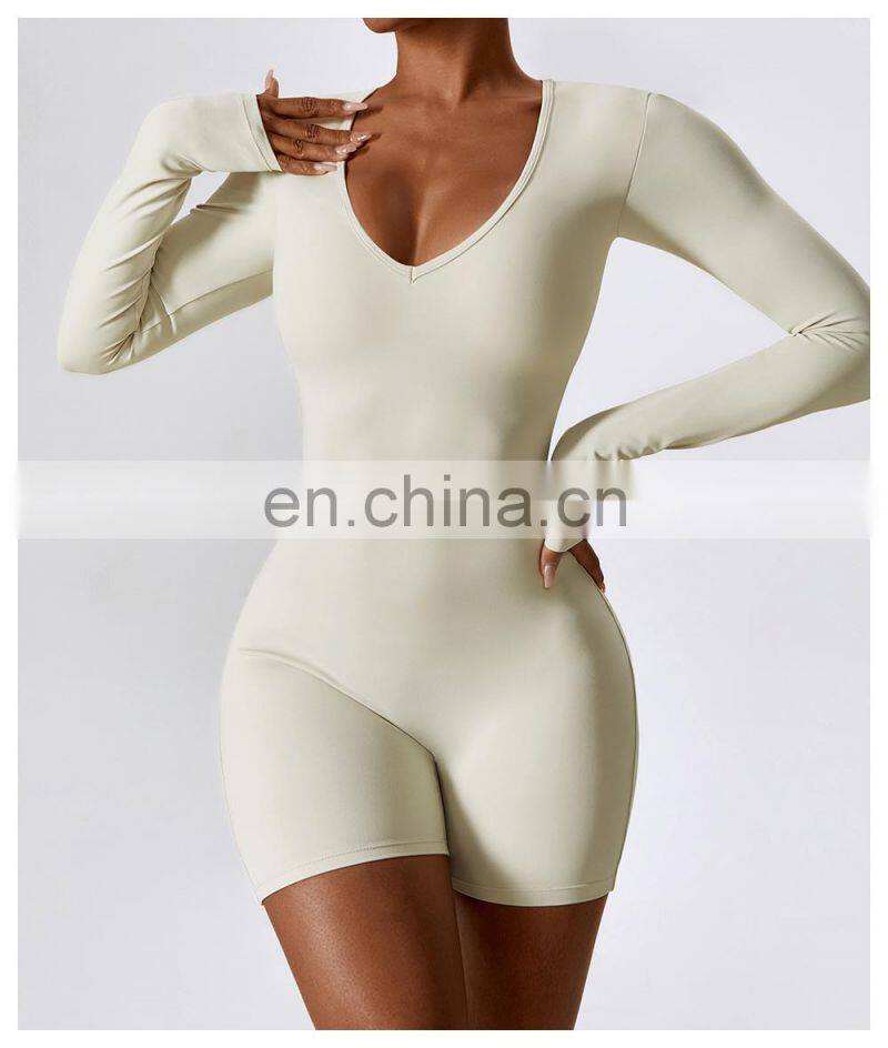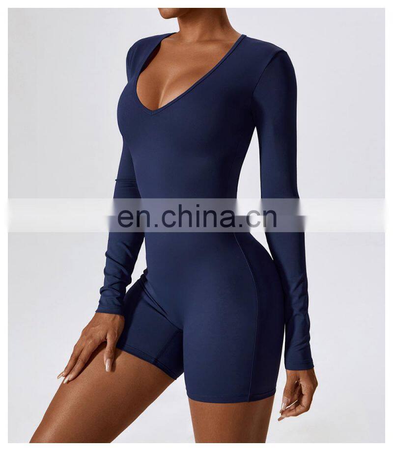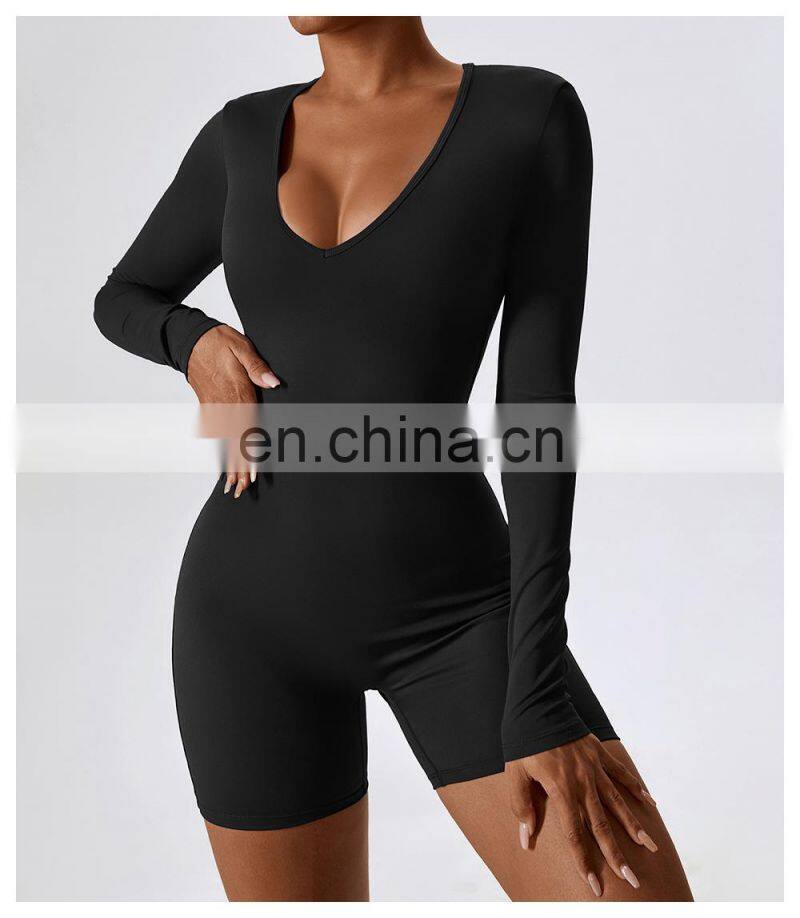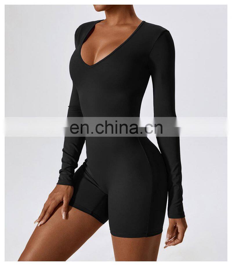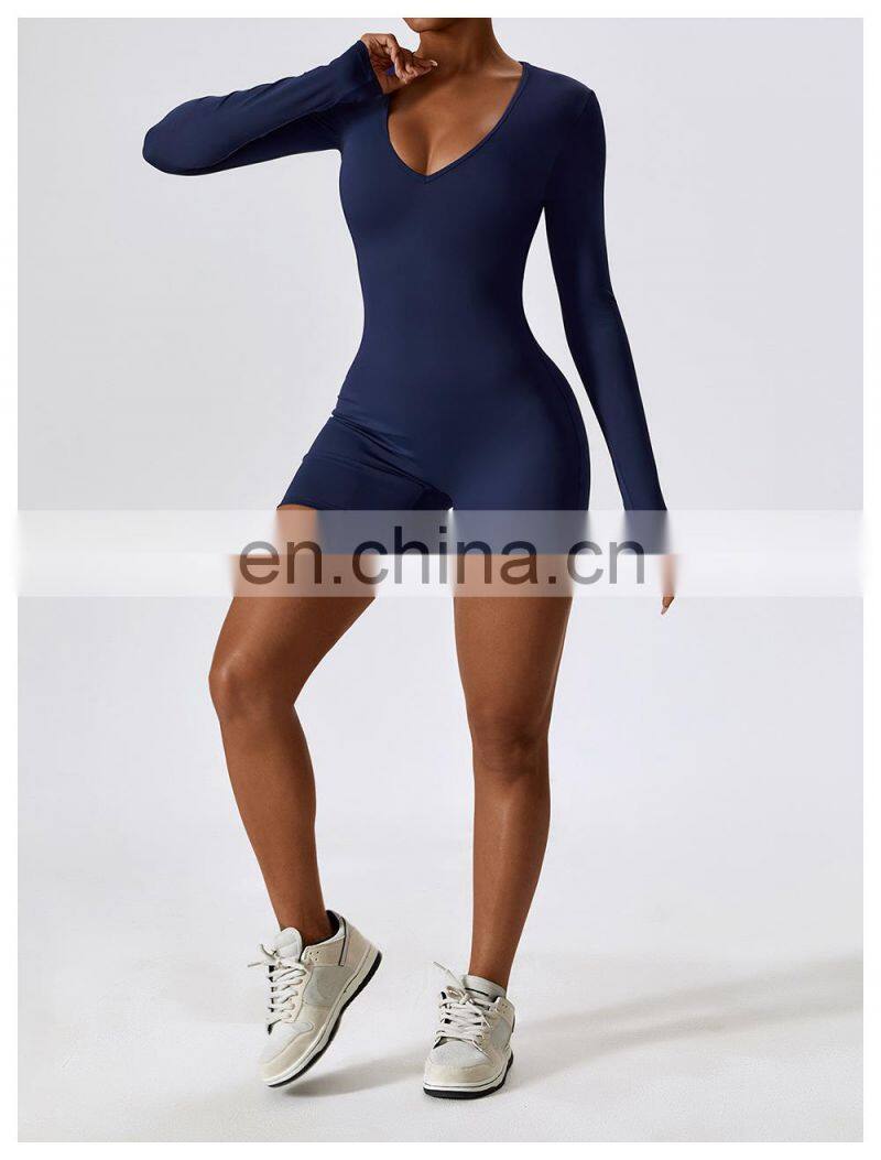 2023 Women Yoga Workout Bodysuits Gym Long Sleeve Sexy Fitness V Neck Fashion One Piece High Quality Breathable Jumpsuit
