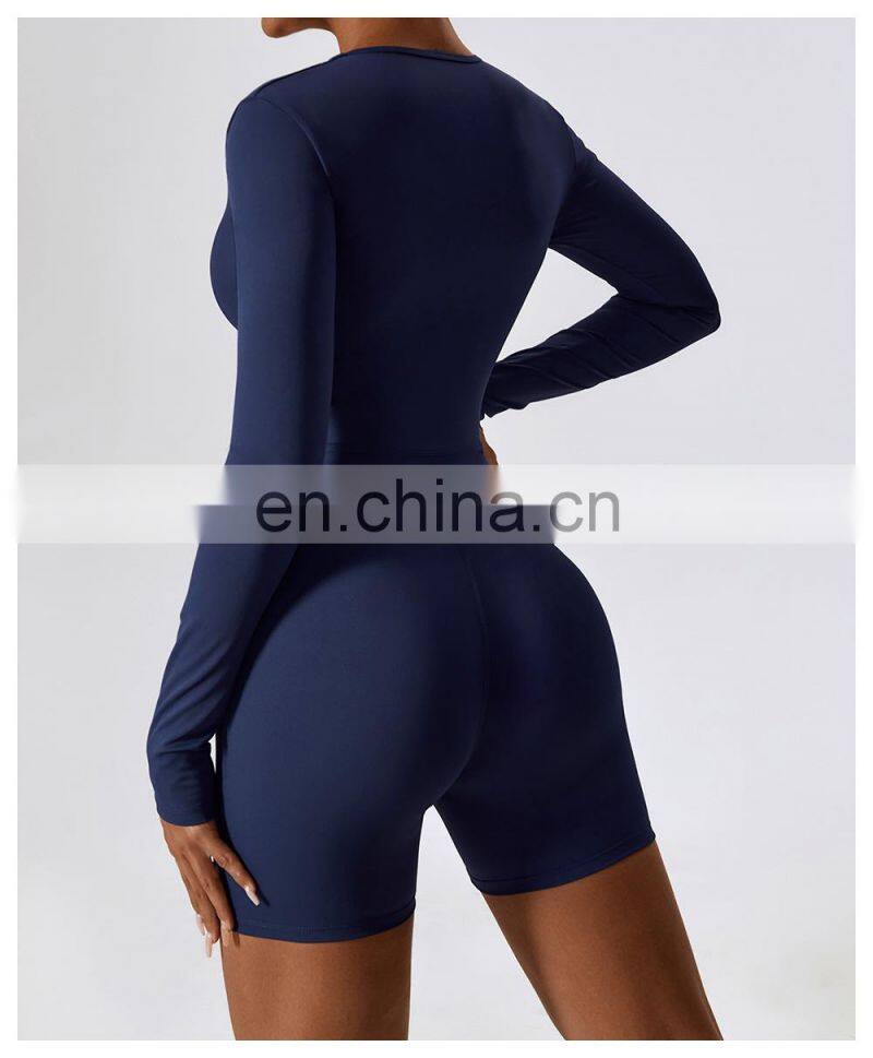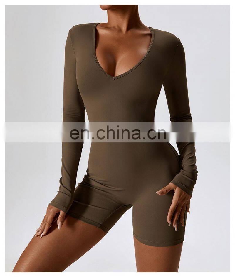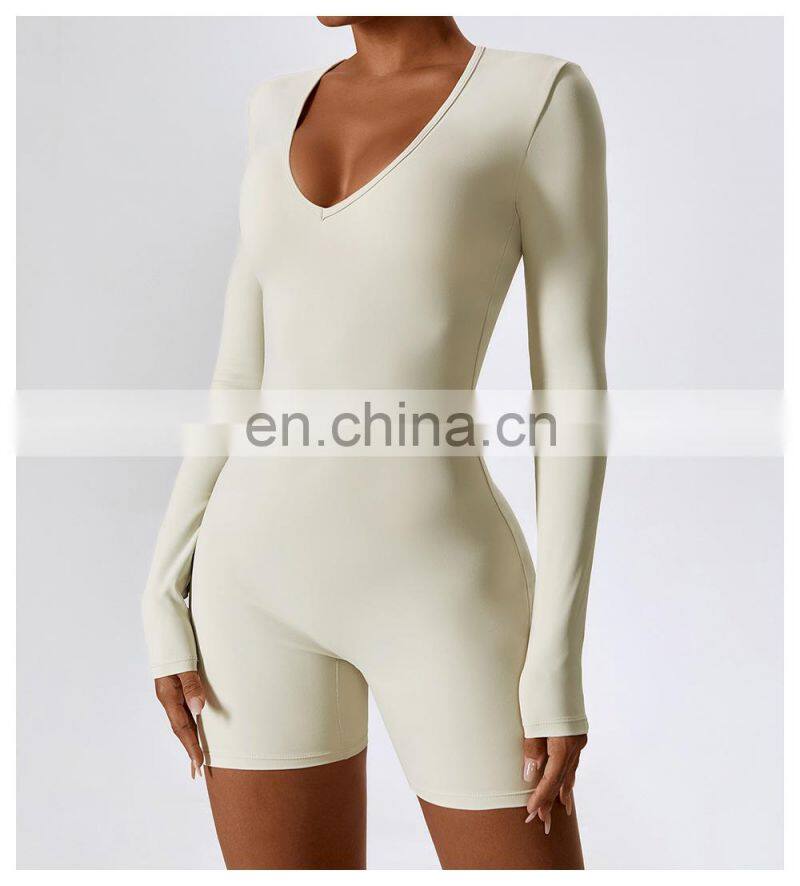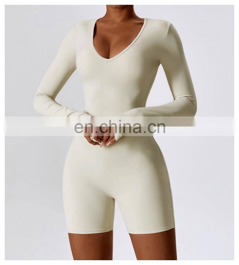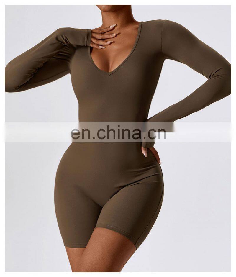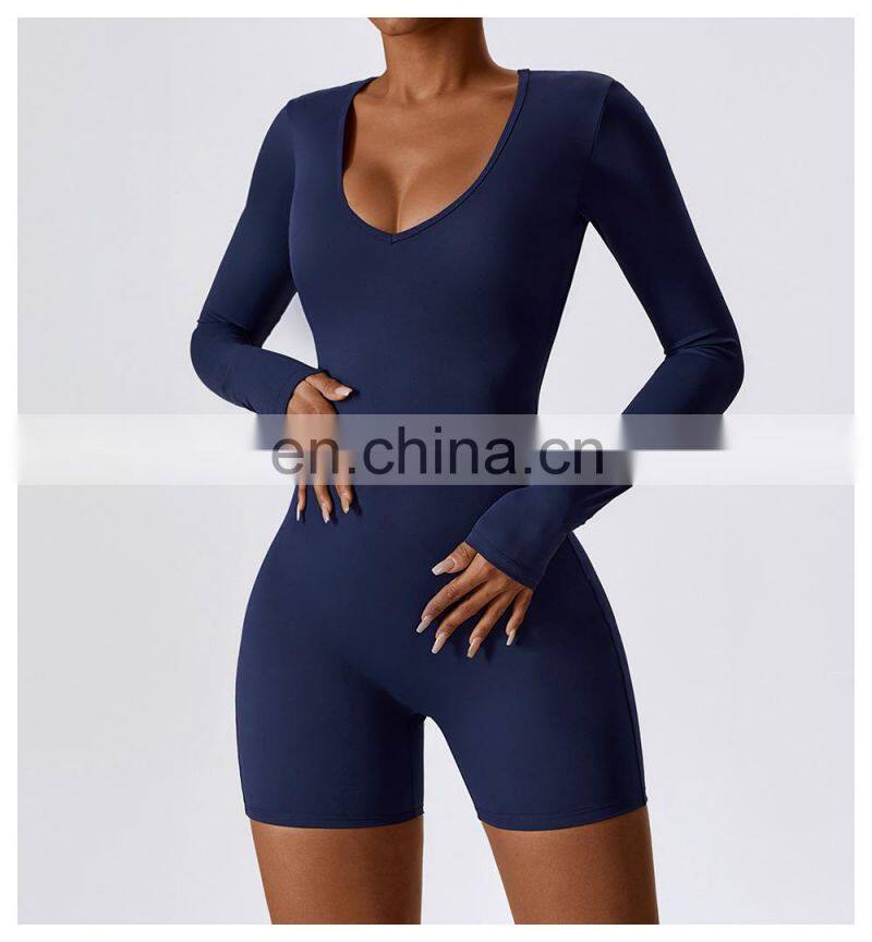 2023 Women Yoga Workout Bodysuits Gym Long Sleeve Sexy Fitness V Neck Fashion One Piece High Quality Breathable Jumpsuit