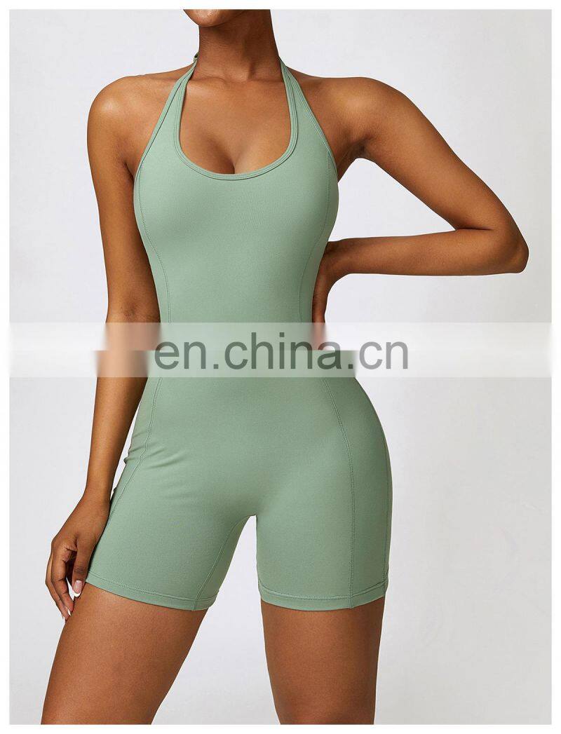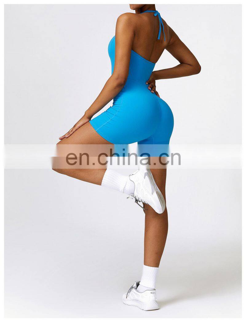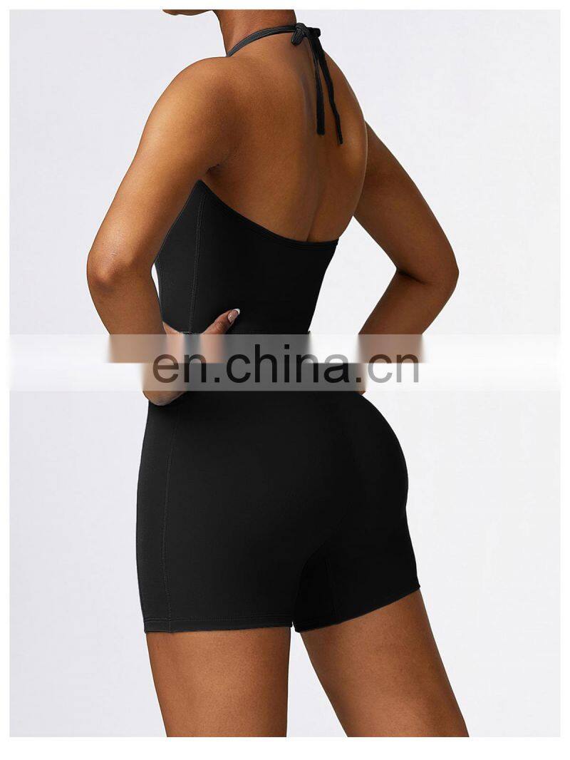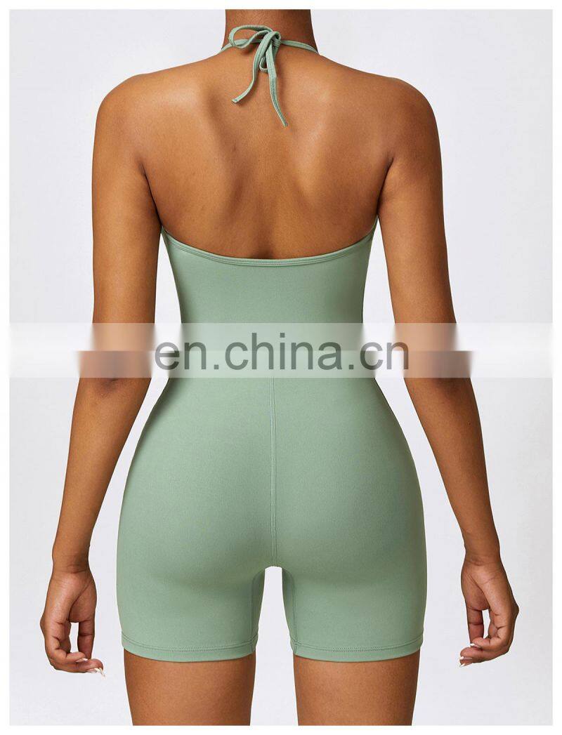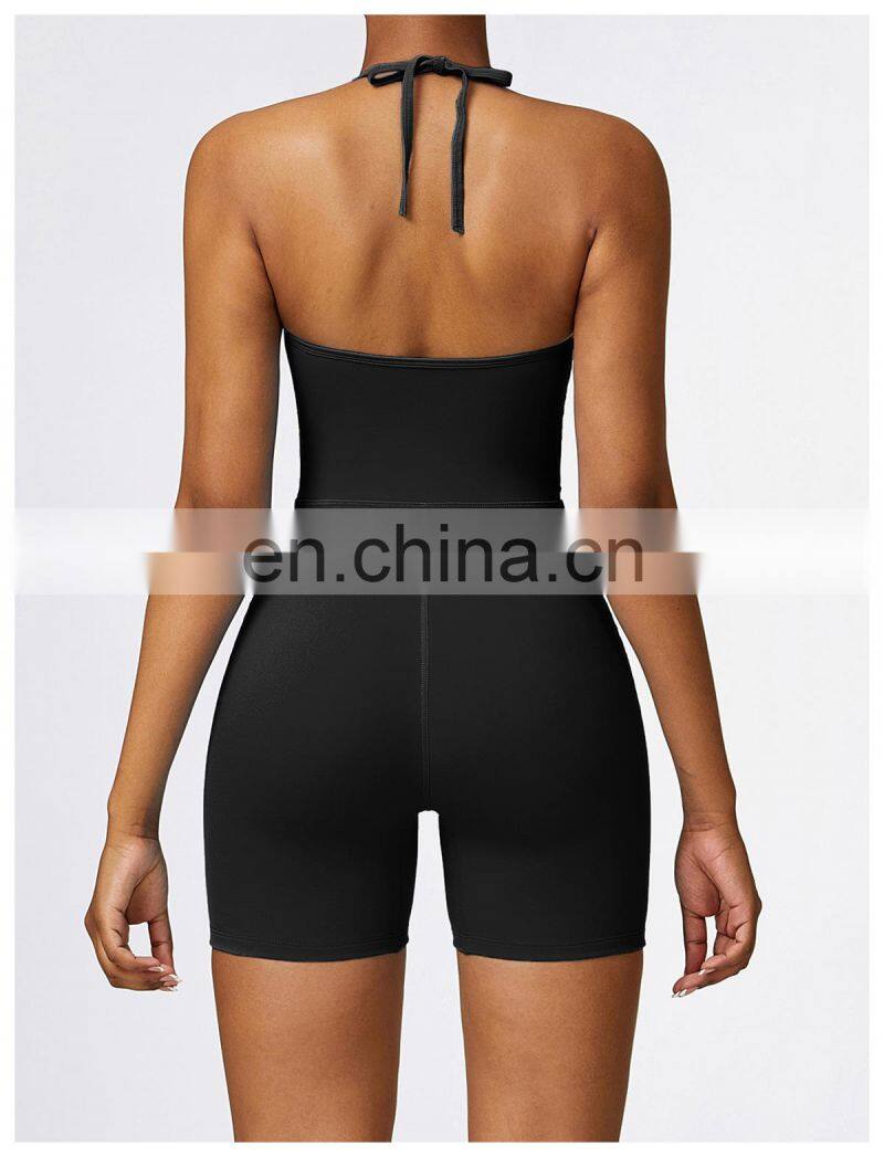 Breathable Sports Rompers Workout Bodysuit Custom Gym Fitness Sets Women Sleeveless Halter One Piece Short Yoga Jumpsuit