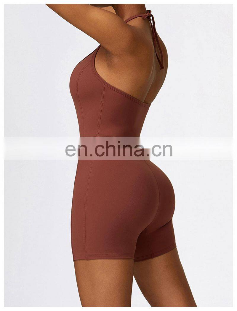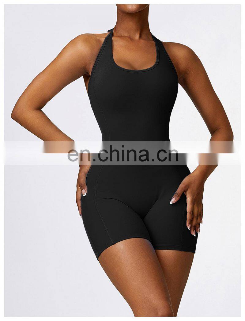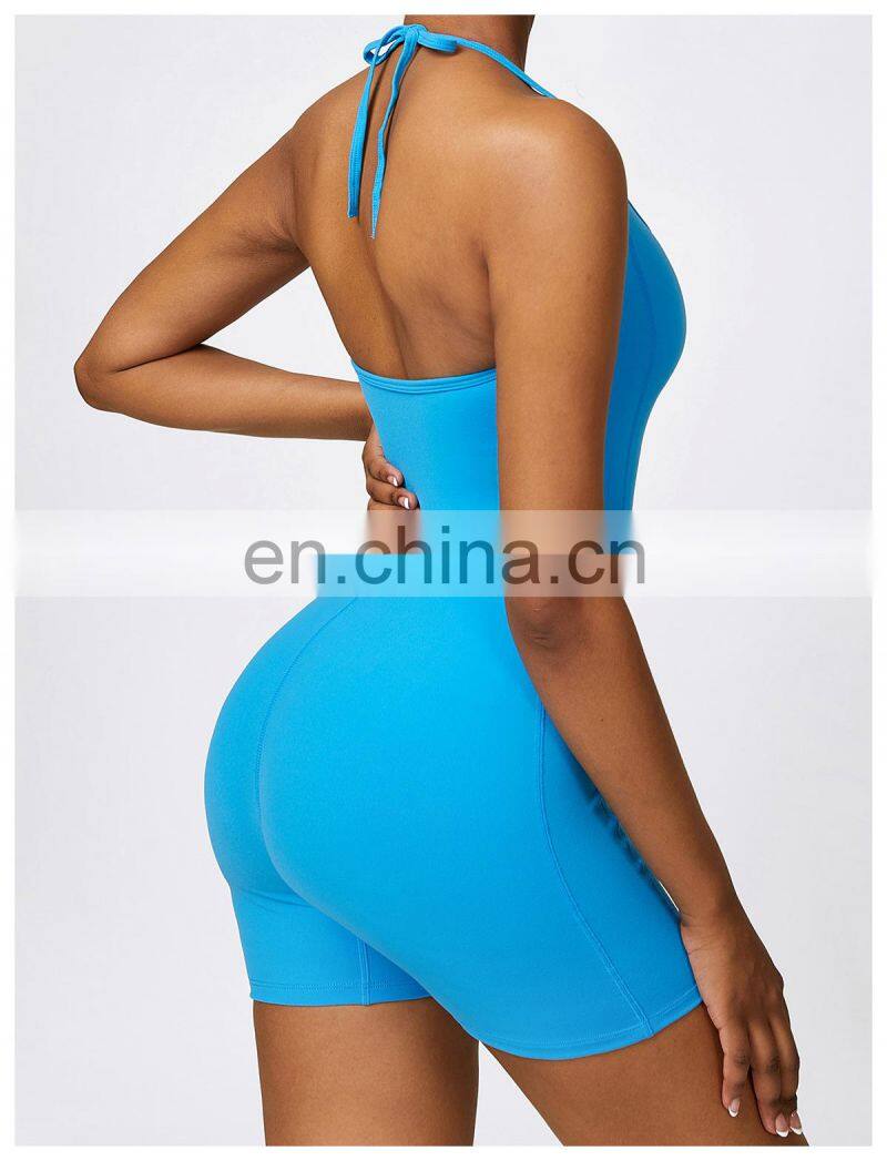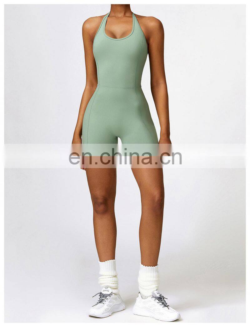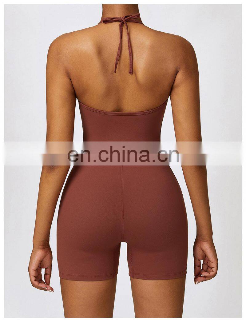 Breathable Sports Rompers Workout Bodysuit Custom Gym Fitness Sets Women Sleeveless Halter One Piece Short Yoga Jumpsuit