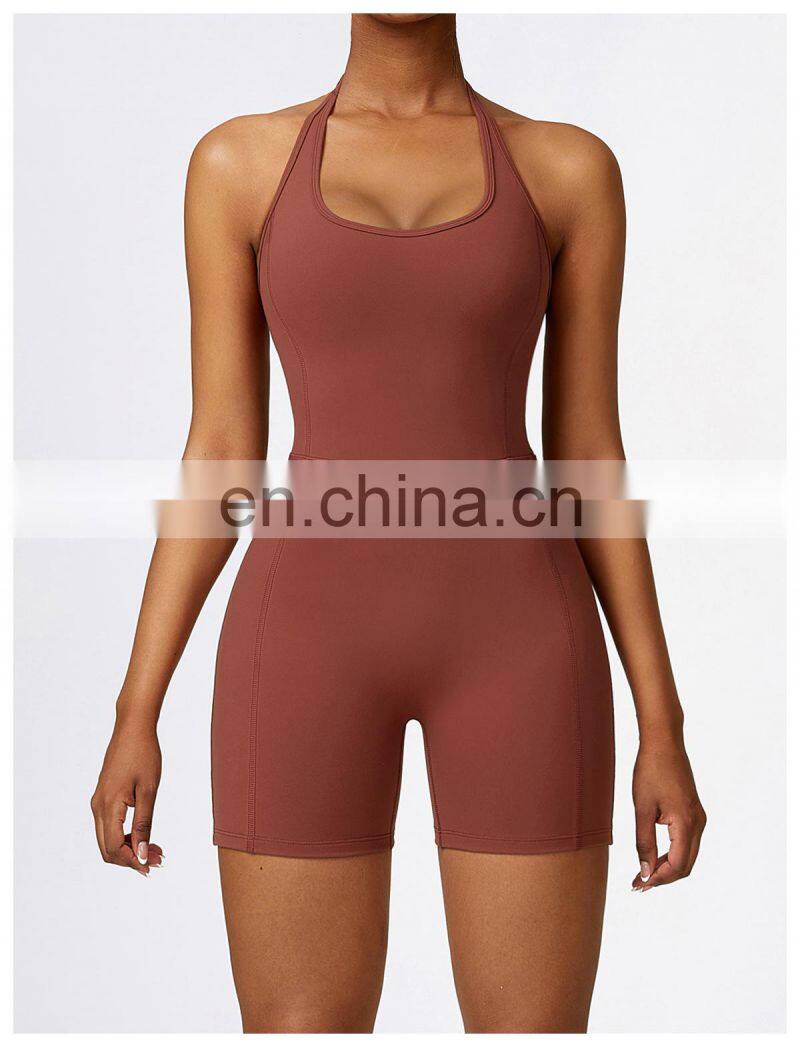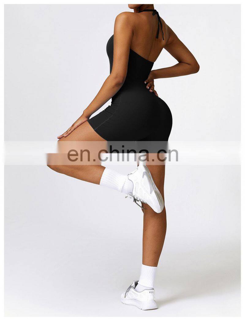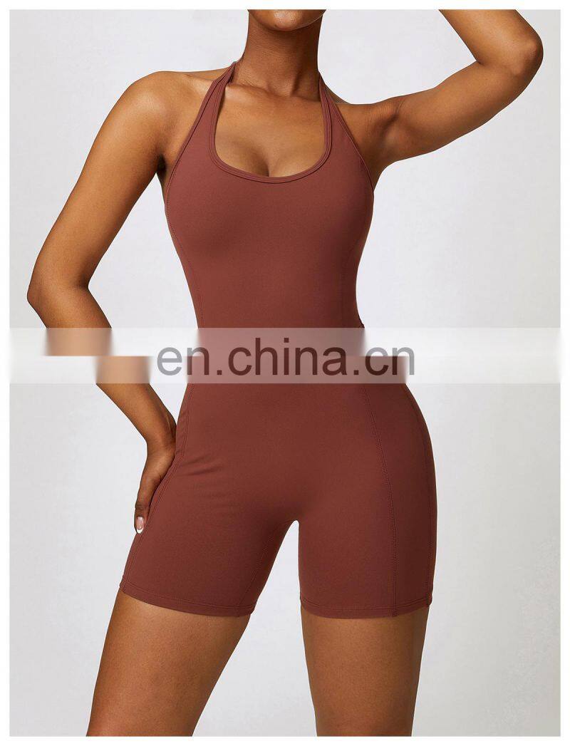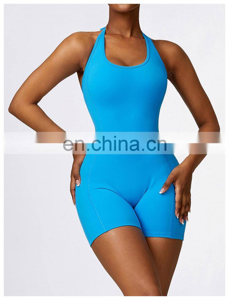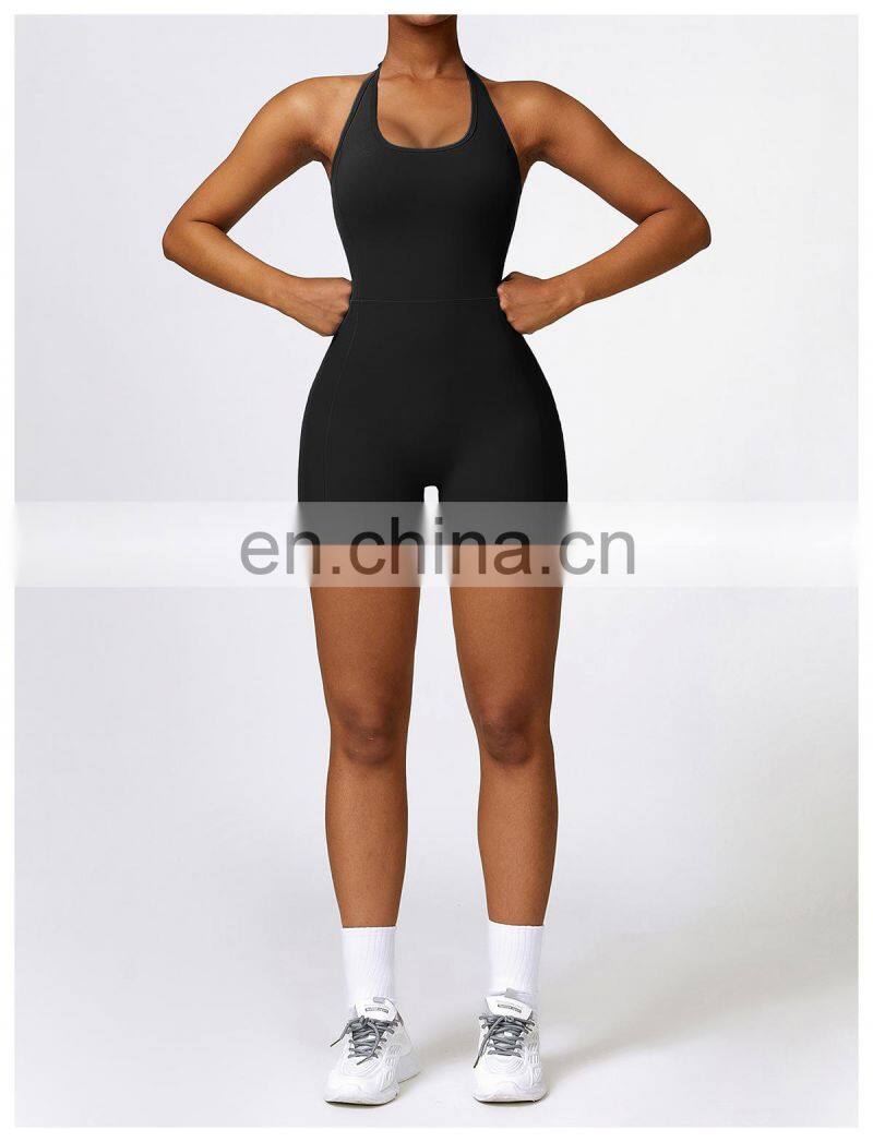 Breathable Sports Rompers Workout Bodysuit Custom Gym Fitness Sets Women Sleeveless Halter One Piece Short Yoga Jumpsuit