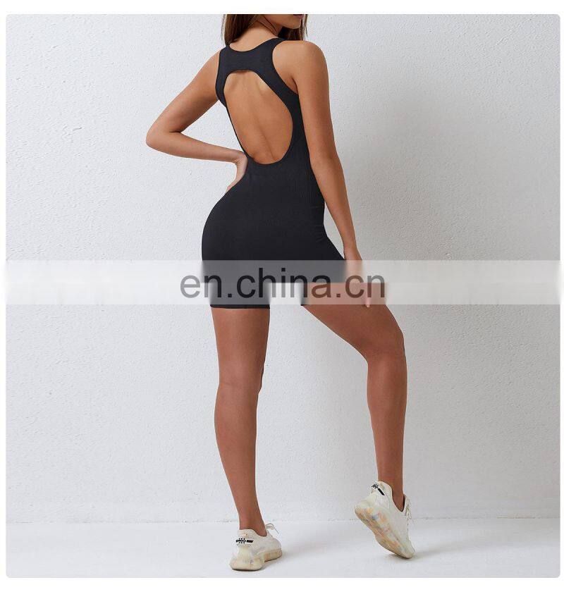 Sexy Hollow Out Back Sleeveless Bodysuit Short Sports Jumpsuit One Piece Gym Fitness Jumpsuits Seamless Yoga Jumpsuit For Women