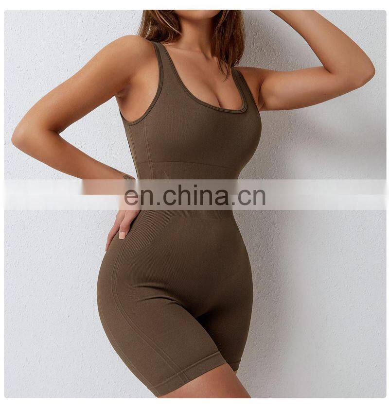 Fashion Seamless Sports Jumpsuit U-shape Neckline Sleeveless Bodysuit Gym Fitness Jumpsuits Women One Piece Yoga Jumpsuit