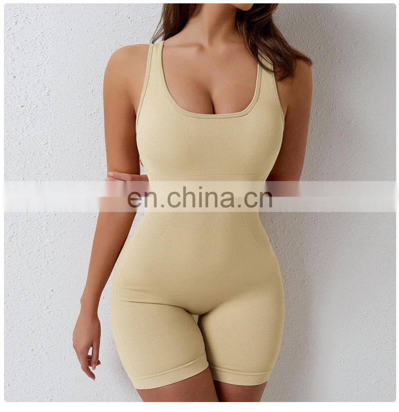 Good Quality Ribbed Seamless One Piece Jumpsuit Ladies Compression Slim Dance Gym Yoga Workout Bodysuit Women Sexy U Back Bra