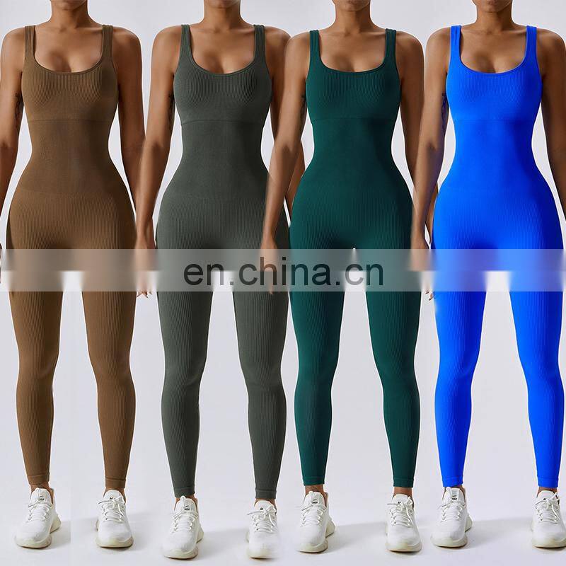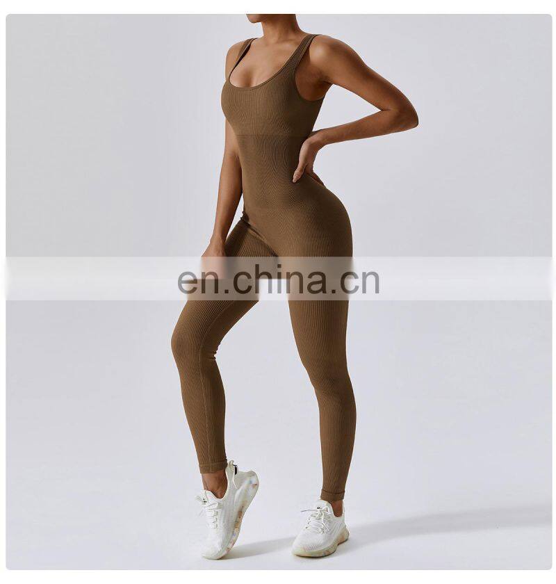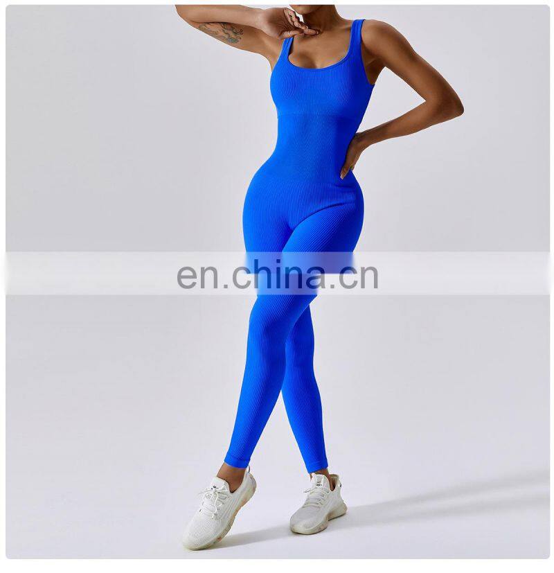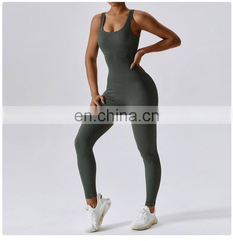Good Quality Ribbed Seamless One Piece Jumpsuit Ladies Compression Slim Dance Gym Yoga Workout Bodysuit Women Sexy U Back Bra