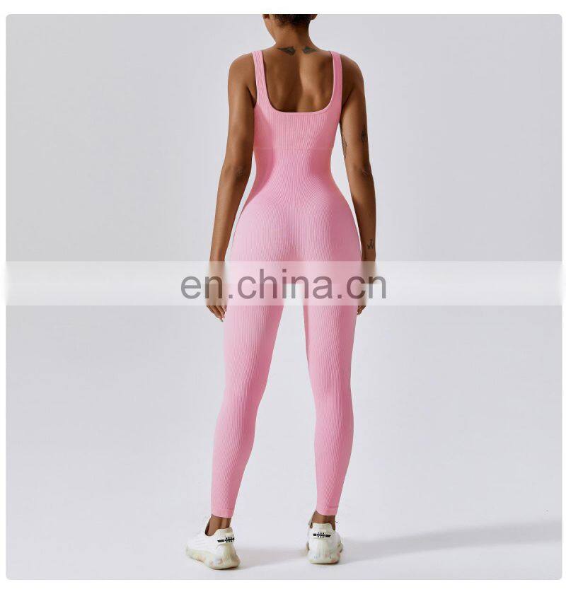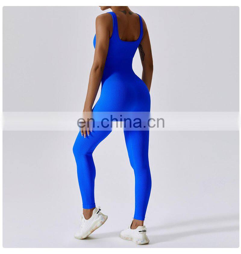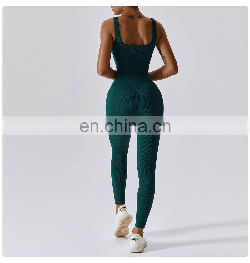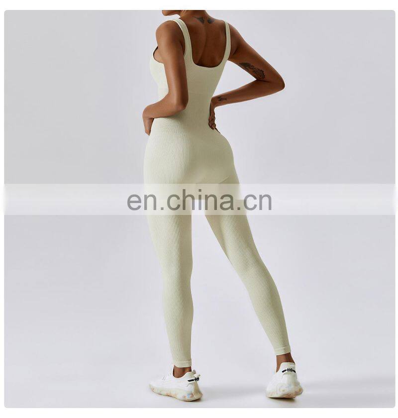 Square Neck Butt Lifting One Piece Jumpsuits Custom Workout Wear Gym Fitness Bodysuit Ribbed Seamless Yoga Jumpsuit For Women