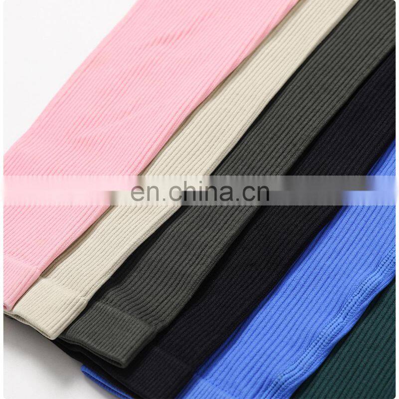 Wholesale Soft Nude Ribbed High Waist Gym Yoga Shorts Outdoor Training Running Sports Slim Biker Short Pants Clothes For Women