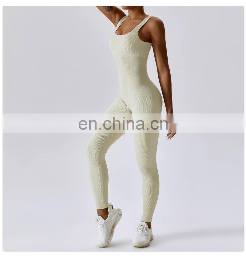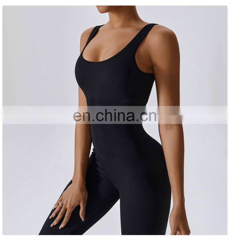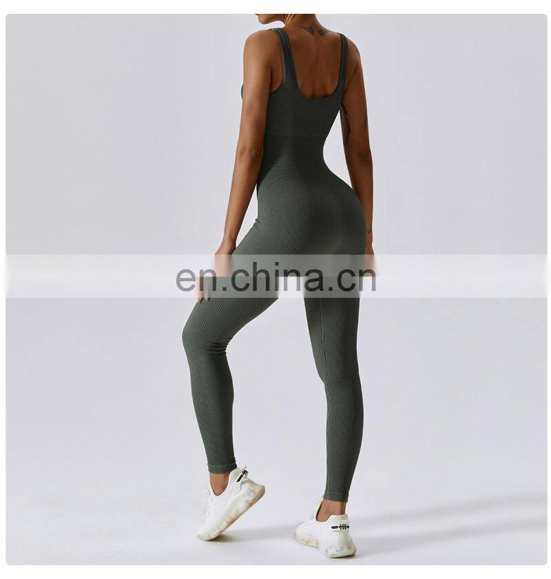 Big U Back Design Butt Lifting Jumpsuits Custom Workout Wear Gym Fitness Ribbed Bodysuit Women Seamless One Piece Yoga Jumpsuit