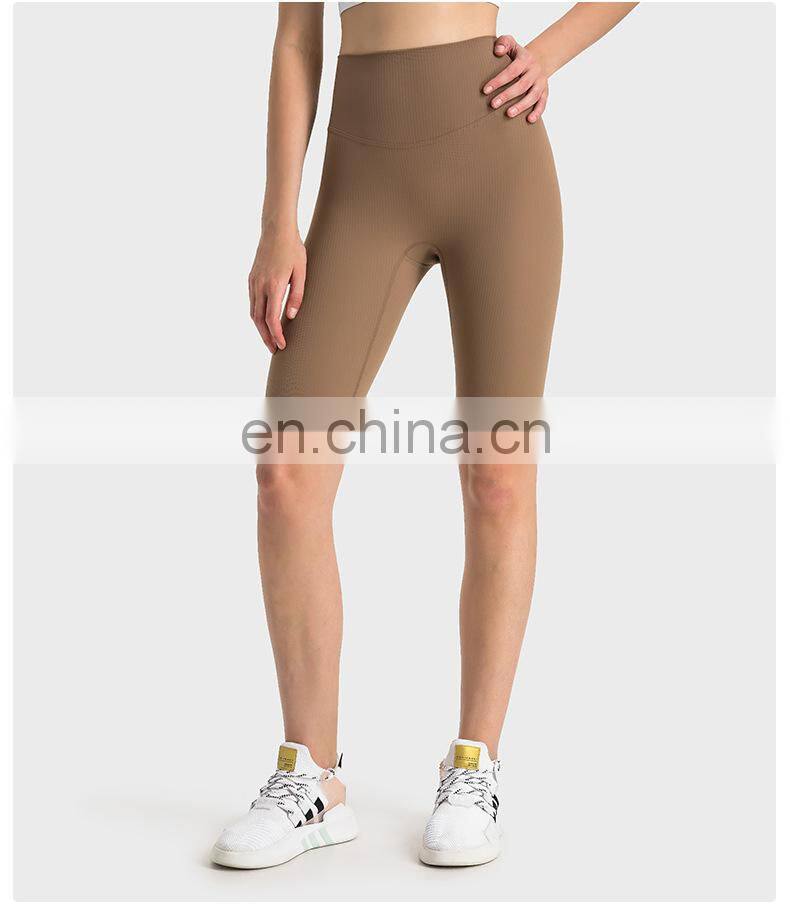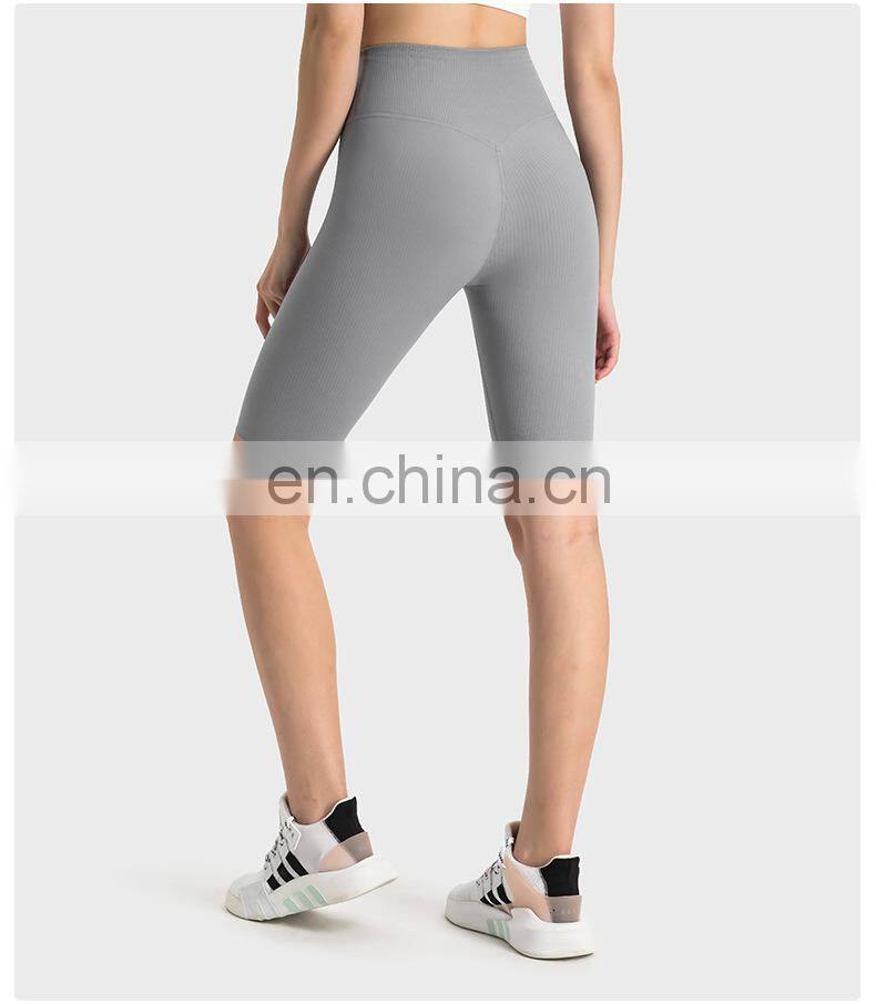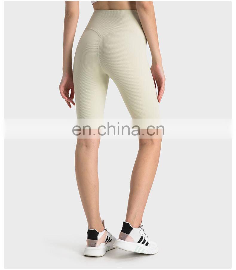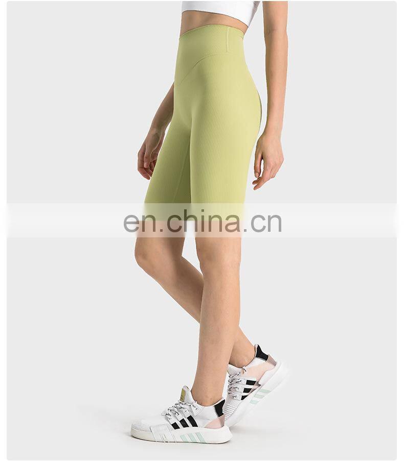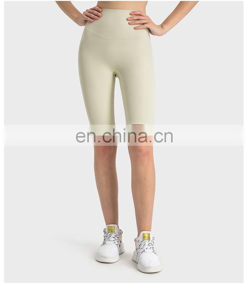 Wholesale Soft Nude Ribbed High Waist Gym Yoga Shorts Outdoor Training Running Sports Slim Biker Short Pants Clothes For Women