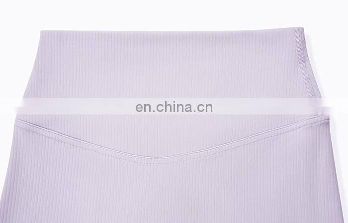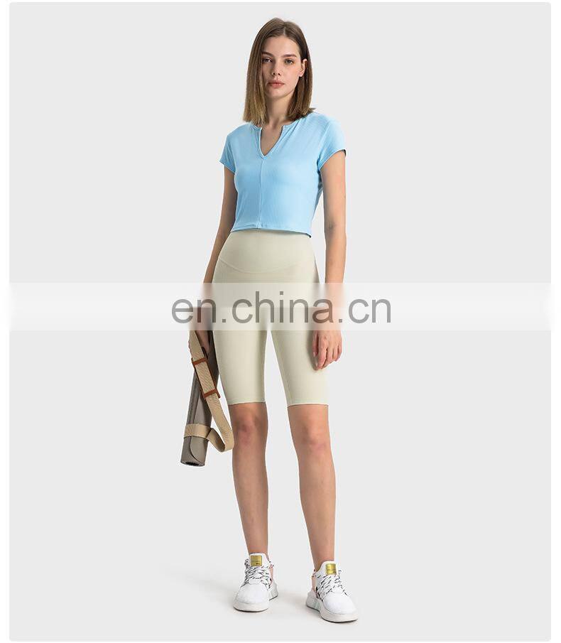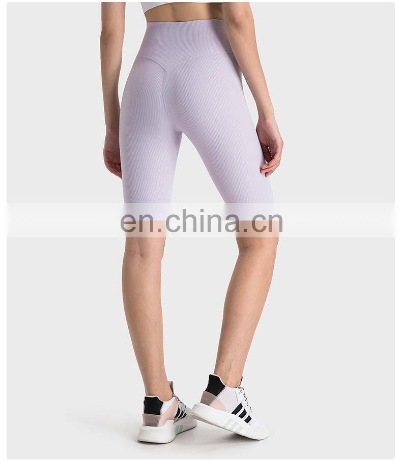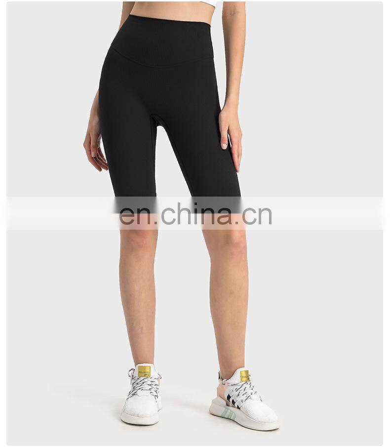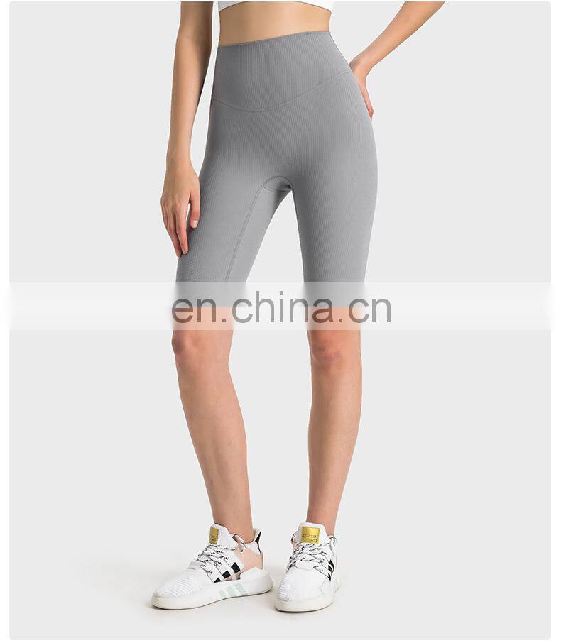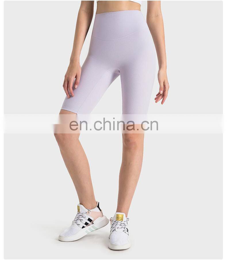 Wholesale Soft Nude Ribbed High Waist Gym Yoga Shorts Outdoor Training Running Sports Slim Biker Short Pants Clothes For Women