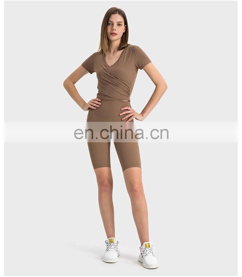 Wholesale Blank Custom V Cut Cross Waist Scrunch Butt Lift Gym Yoga Shorts Workout Training Sport Fitness Wear Clothes For Women
