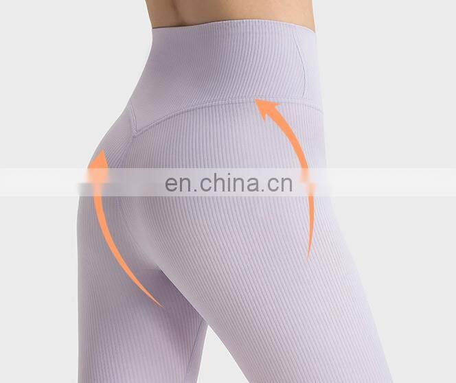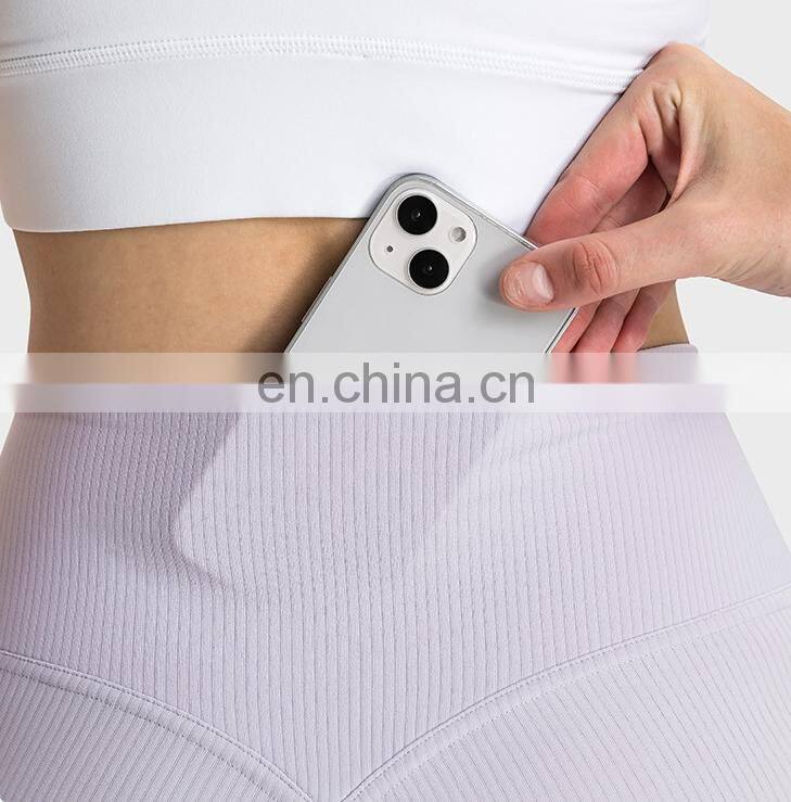 New Arrivals High Waist V Back No Front Rise Seam Ribbed Peach Hip With Hidden Pocket Gym Fitness Sports Yoga Wear Women Clothes