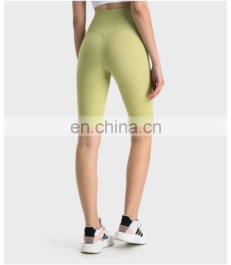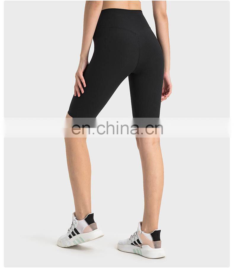 Newest Design Ribbed High Waist Peach Hip Slim Fit Outdoor Workout Gym Biker Shorts Ladies Fitness Yoga Sports Wear For Women