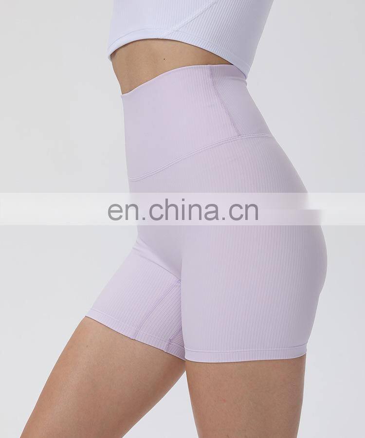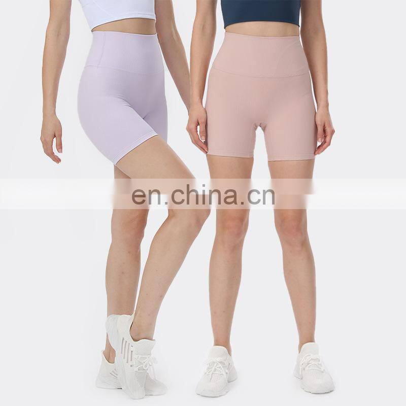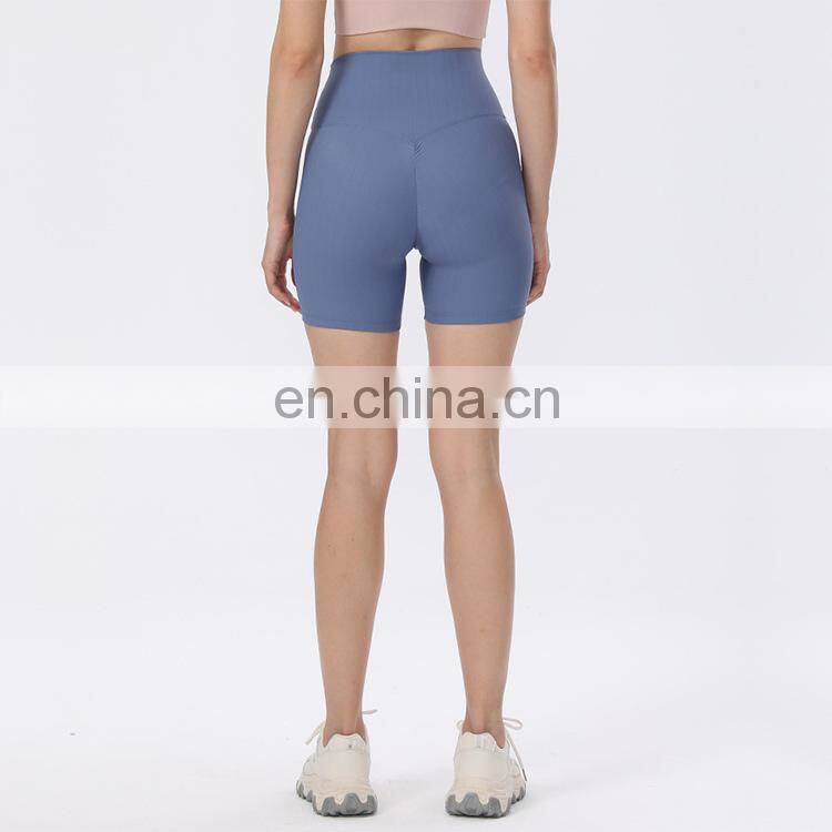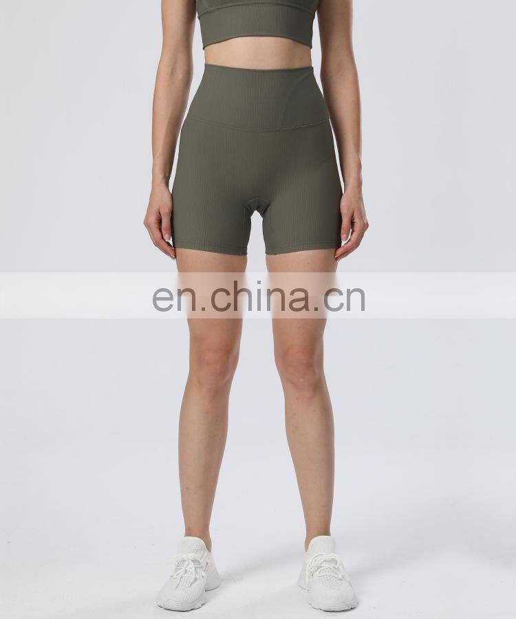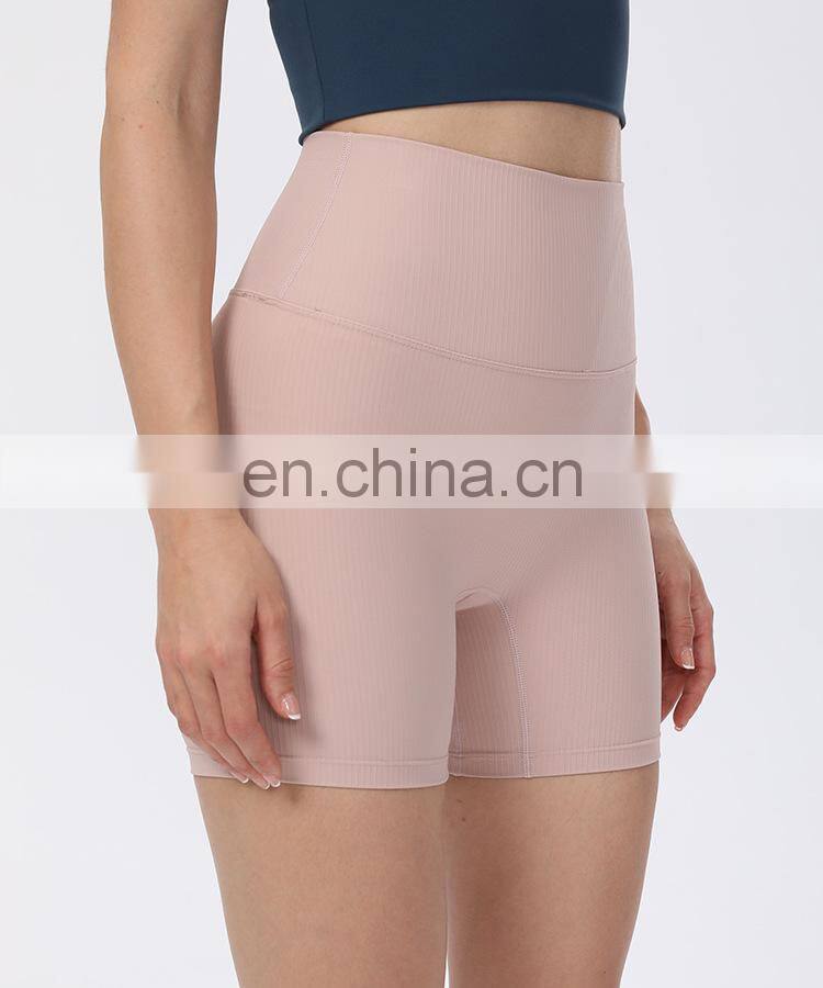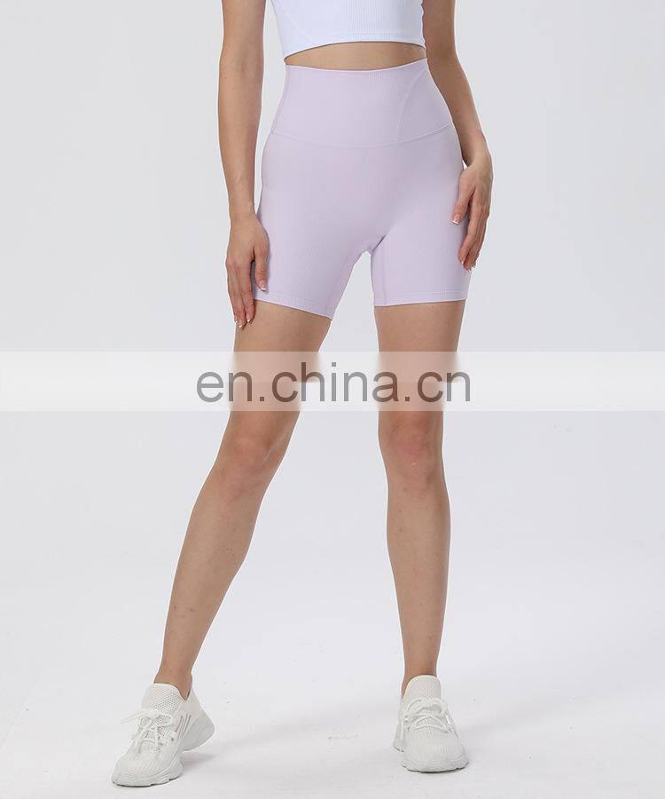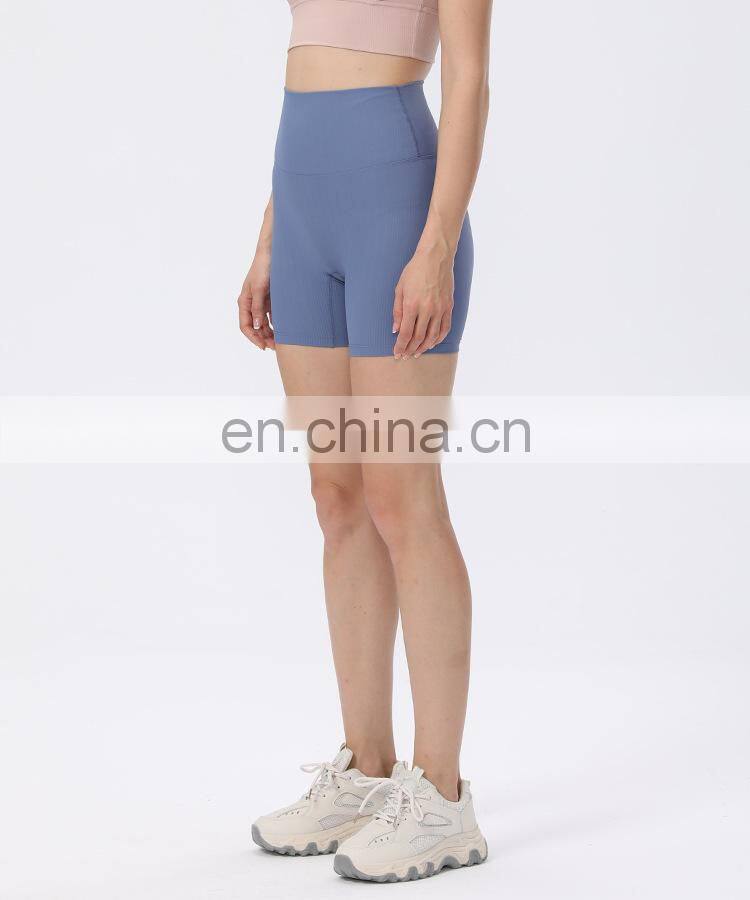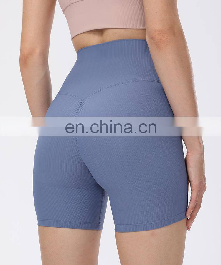 Wholesale Soft Nude Ribbed High Waist Gym Yoga Shorts Outdoor Training Running Sports Slim Biker Short Pants Clothes For Women