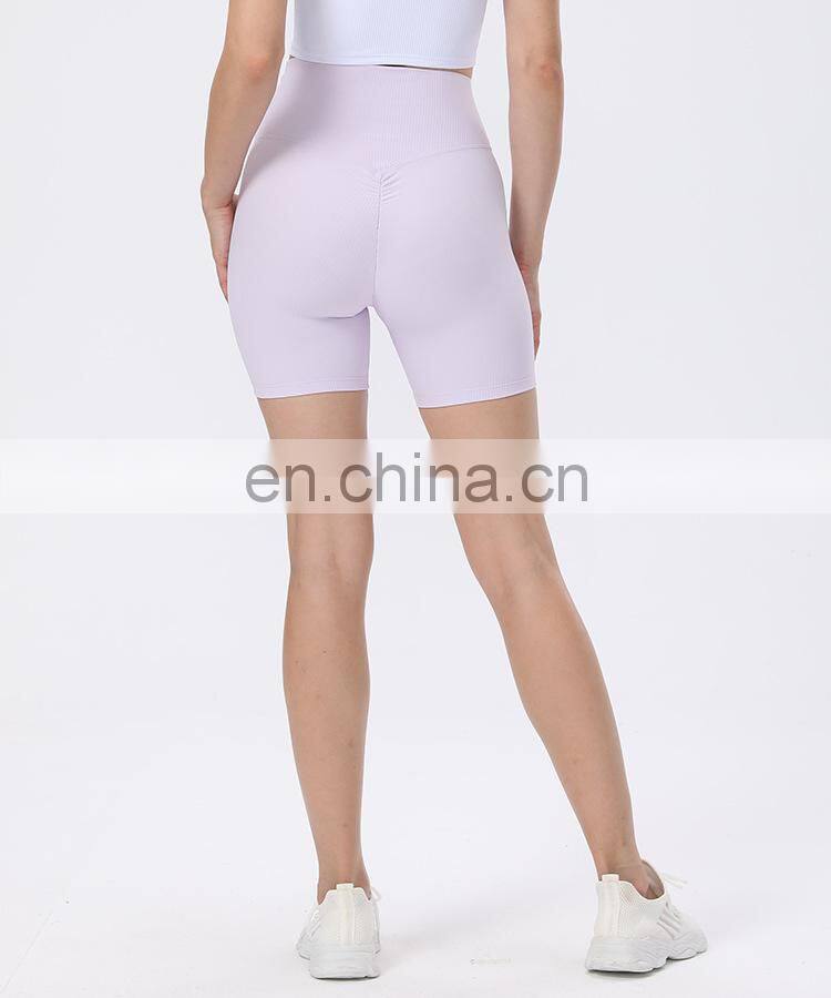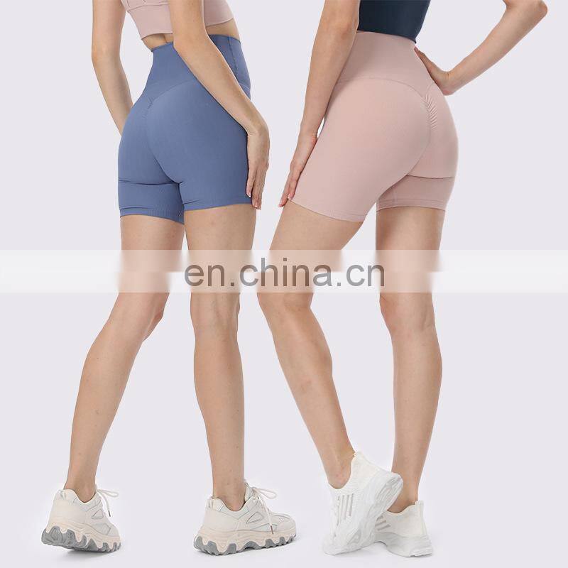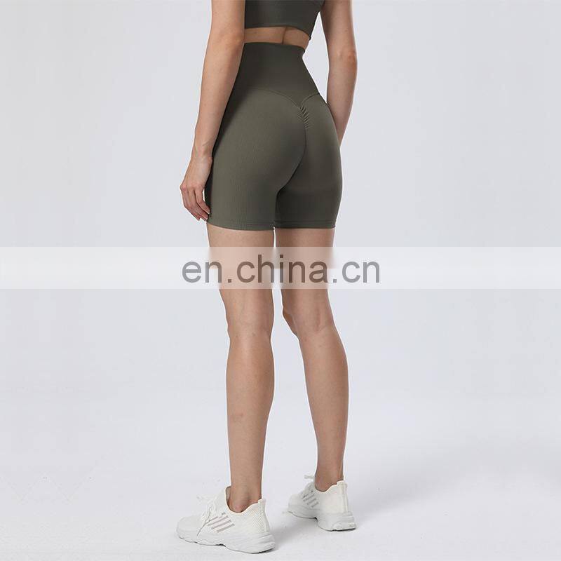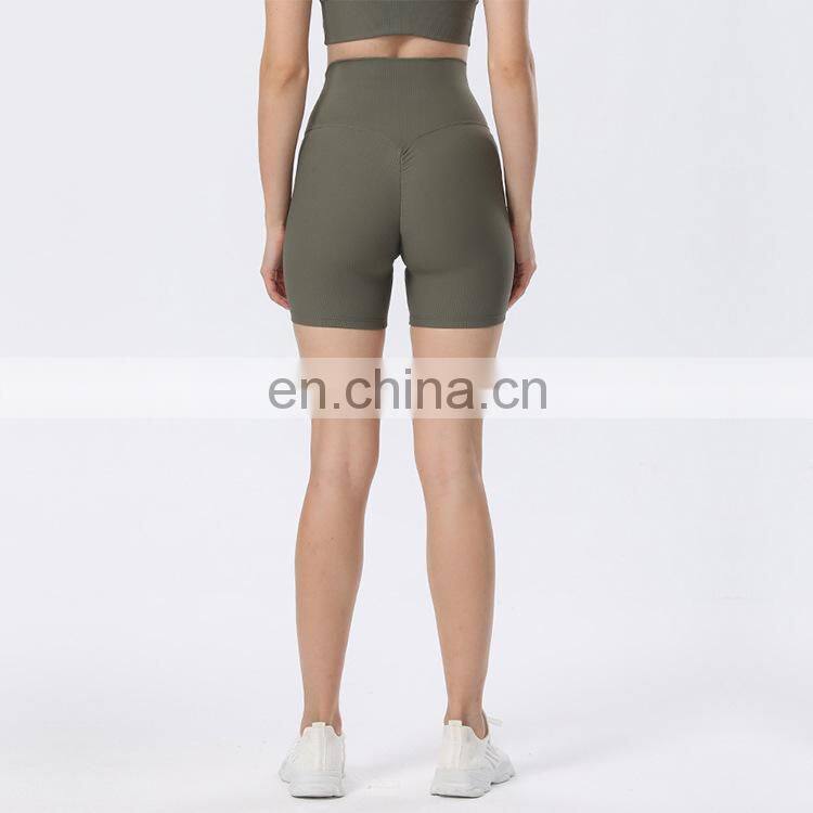 Newest Design Ribbed High Waist Peach Hip Slim Fit Outdoor Workout Gym Biker Shorts Ladies Fitness Yoga Sports Wear For Women