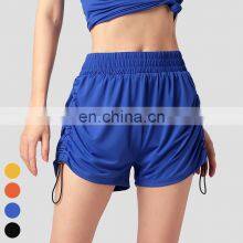 Quick Dry High Waist Side Drawstring Adjustable Ice Silk Running Sports Shorts Gym Fitness Yoga Pants Workout Shorts For Women