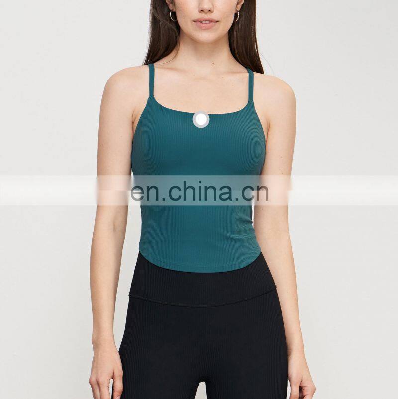 Home > Products > Fitness Yoga Tanks > New Summer Sexy Ribbed Casual Strap Sports Built In Bra Fixed Pads Tank Top Soft Women Workout Gym Yoga Fitness Wear Clothes
