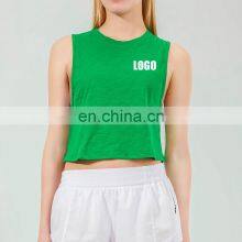 High Neck Sleeveless Loose Gym Yoga Crop Tank Top Sweat-Wicking Cotton Outdoor Training Sports Wear Fitness Tank Top For Women