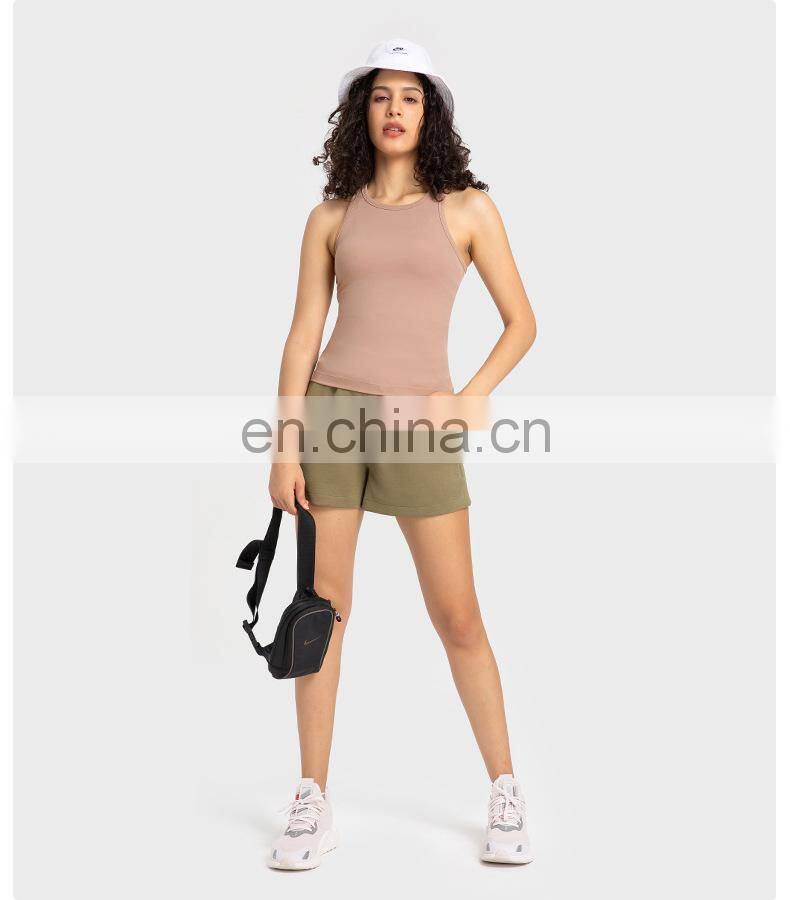 High Neck Sleeveless Loose Gym Yoga Crop Tank Top Sweat-Wicking Cotton Outdoor Training Sports Wear Fitness Tank Top For Women