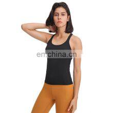 Wholesale Hot Yoga Wear Women Fitness Athletic Sport Built In Bra Two-in-one Yoga Tank Top Quick Dry Sexy Summer Shirts & Tops