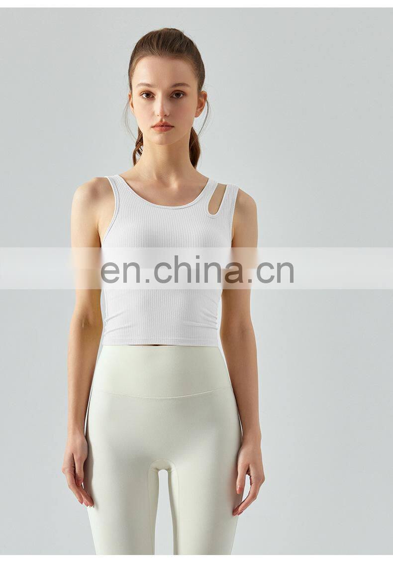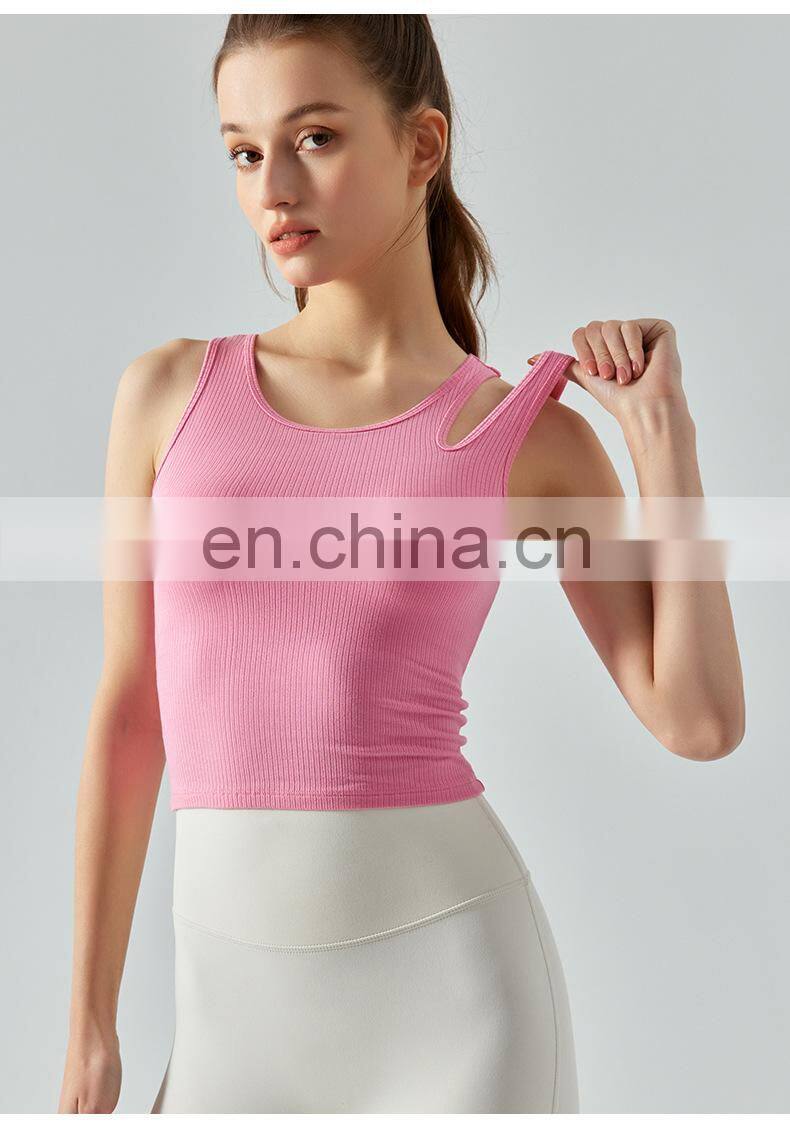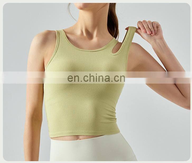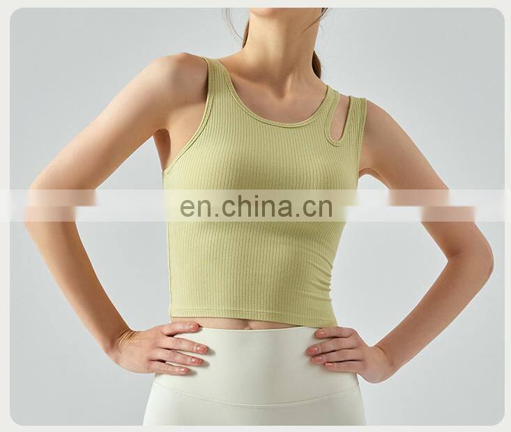 New Spring 2023 Ribbed Built In Bra Sports Crop Top Cotton Casual Sleeveless Tanks Top Hollow Out Gym Fitness Wear For Women