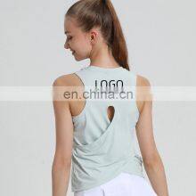 New Custom Logo Sleeveless Sports Yoga Tanks Top Sexy Slim Fit Cross Back Hollow Out Gym Yoga Shirts Women Fitness Wear Clothes