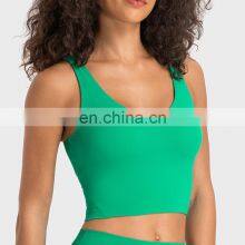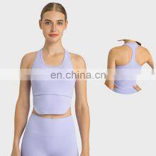 Built In Bra Fixed Pads Blank Custom Sports Yoga Crop Top Women Sports Gym Wear Bra Vest Top Workout Exercise Running Clothing
