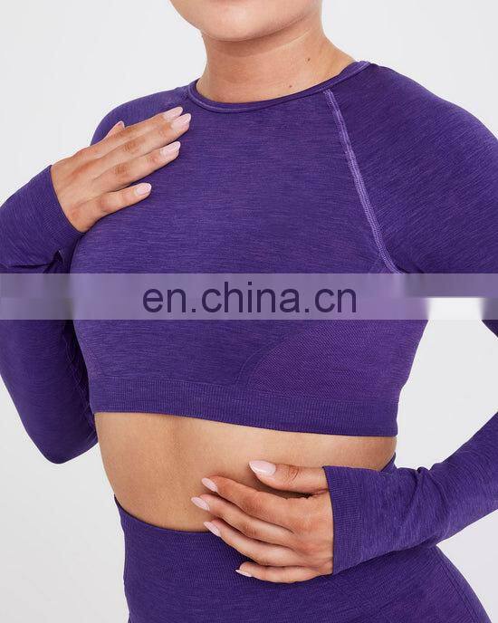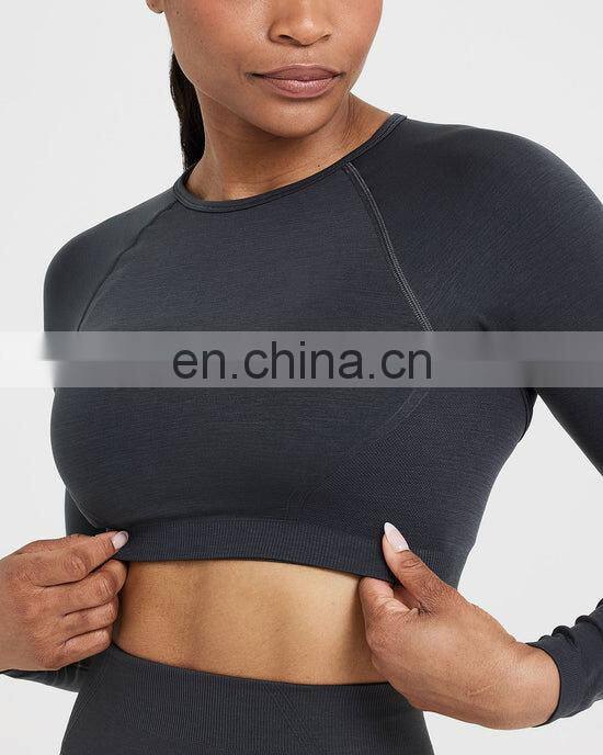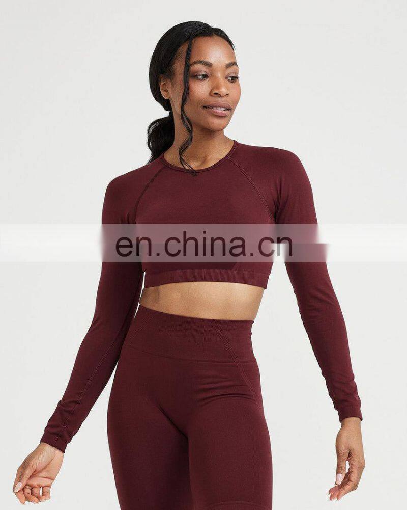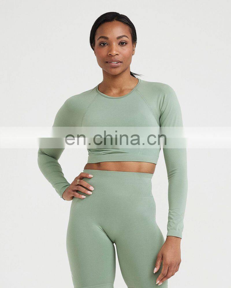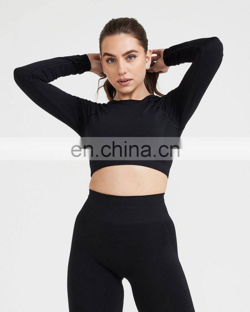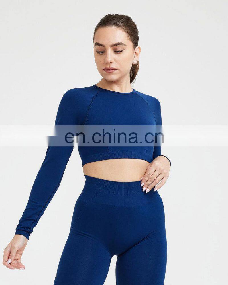Four-way Stretch Wholesale Seamless Yoga Clothes Good Quality Long Sleeve Top 2Pcs Gym Fitness Sets Workout Wear Sports Suit Set