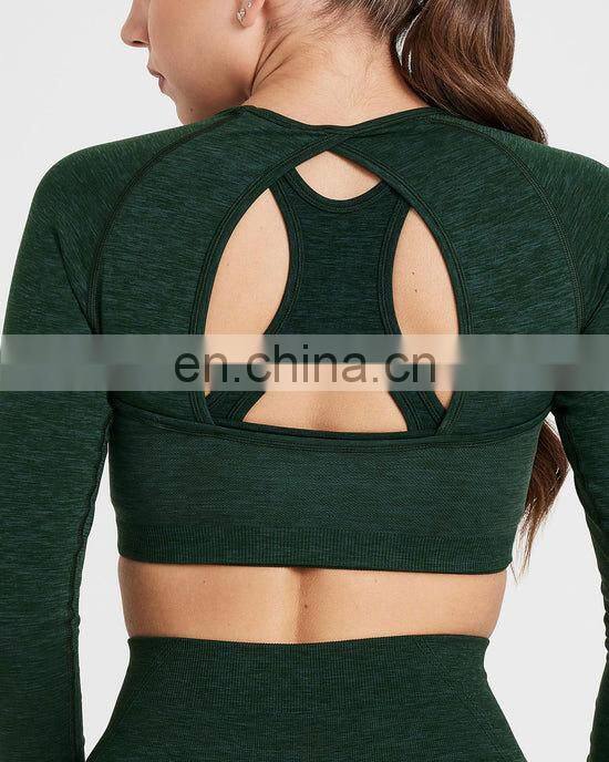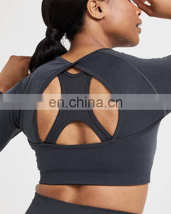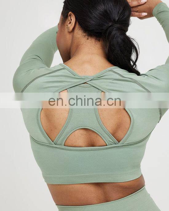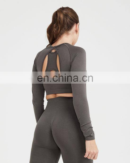 Custom Label Hollow Out 2 Piece Yoga Wear Workout Long Sleeve Clothing Activewear Private Seamless Gym Fitness Sets For Women