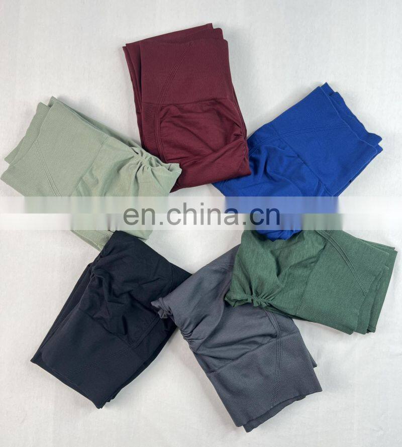 New Ribbed Scrunch Butt Lift Seamless Leggings Yoga Suit Push Up Bra Top Women Workout Gym Running Sportswear 2/3/4/5/6 PCS Set