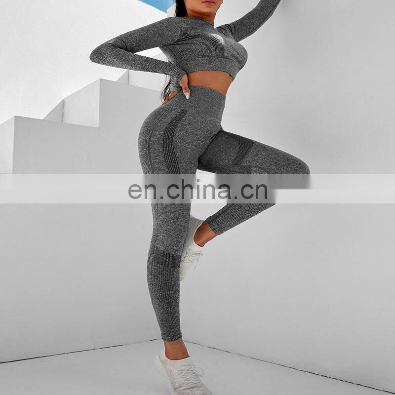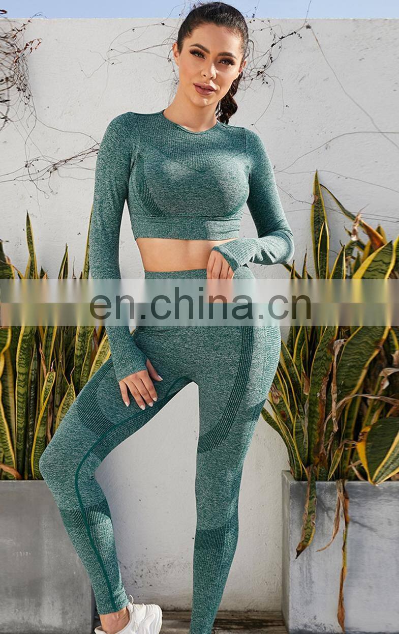 Four-way Stretch Wholesale Seamless Yoga Clothes Good Quality Long Sleeve Top 2Pcs Gym Fitness Sets Workout Wear Sports Suit Set