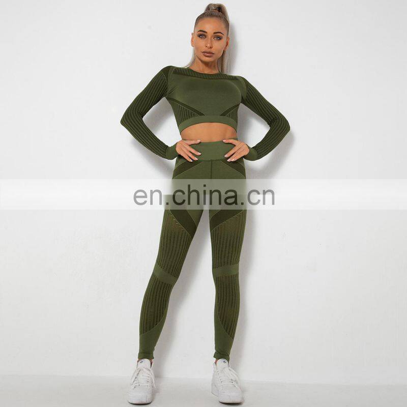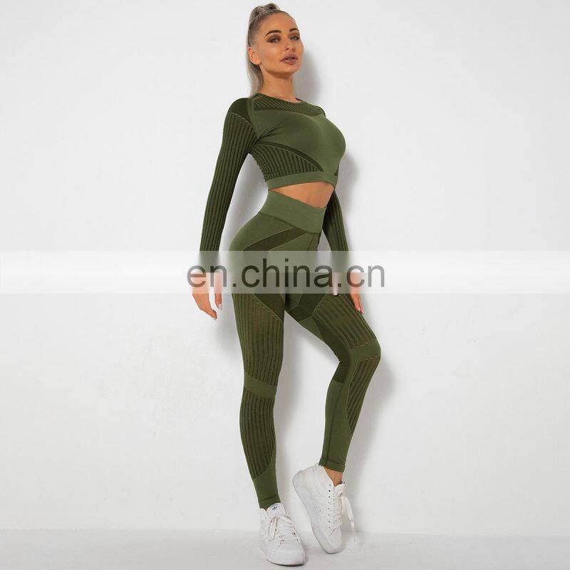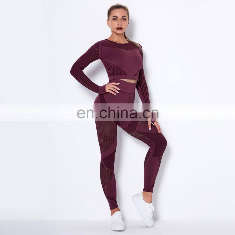 Custom Label Hollow Out 2 Piece Yoga Wear Workout Long Sleeve Clothing Activewear Private Seamless Gym Fitness Sets For Women