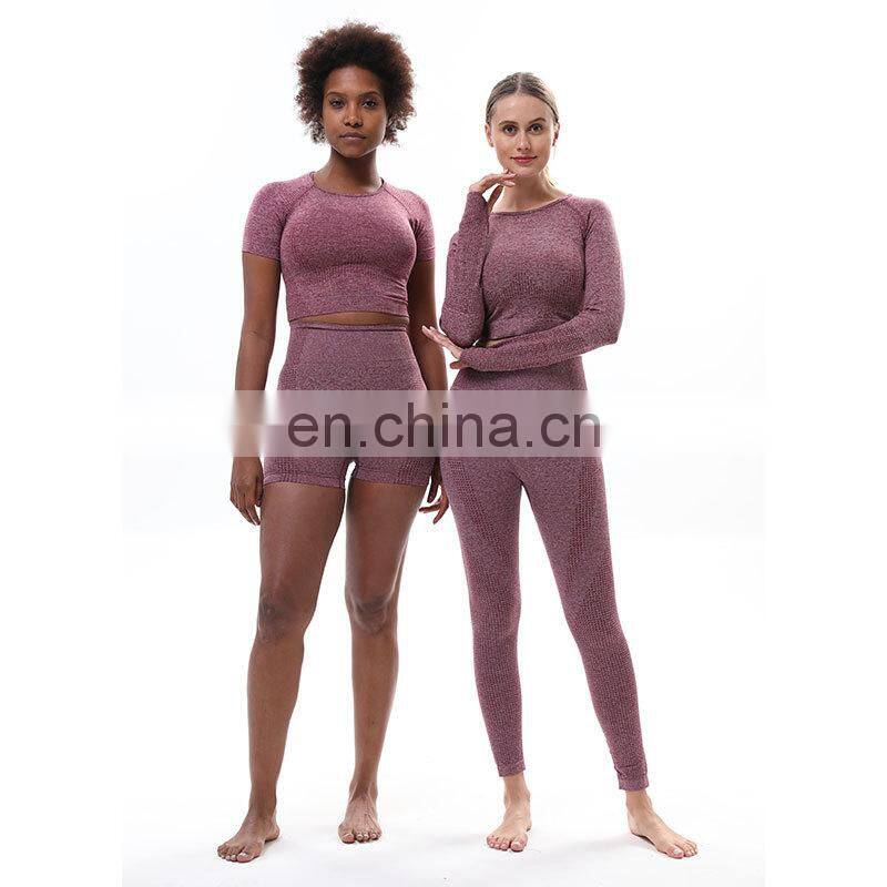 2 Piece Gym Set Women Seamless Long Sleeve Crop Top And Leggings Yoga Gym Wear Set