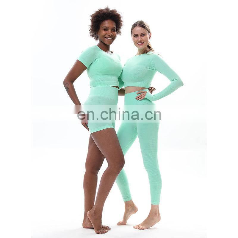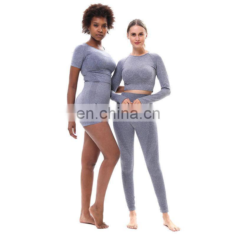 Tik Tok Hot Style Custom Logo 2/3 Piece Fitness Sports Yoga Leggings Sets Ladies Seamless Workout Gym Wear Long Sleeve Top Sets