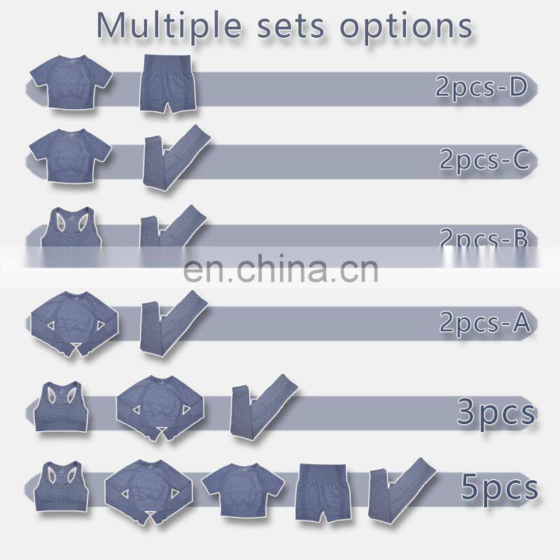 Hot Sale Workout 2/3/4/5 Piece Seamless Gym Fitness Sports Yoga Suit Set Cross Back Bra High Waist Leggings Women Training Wear