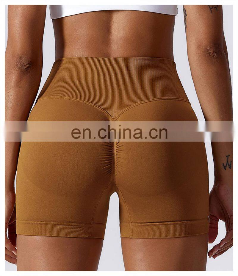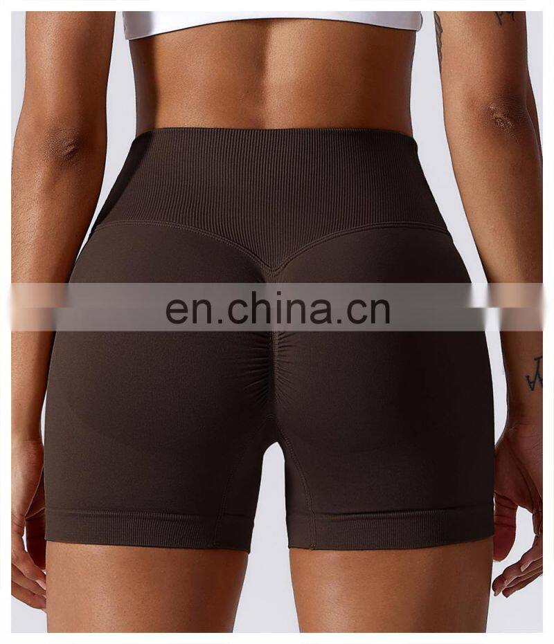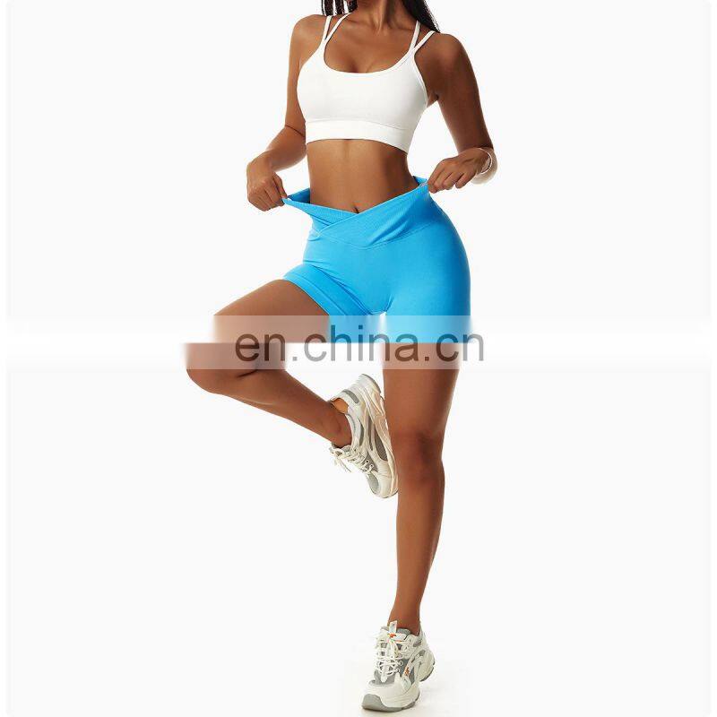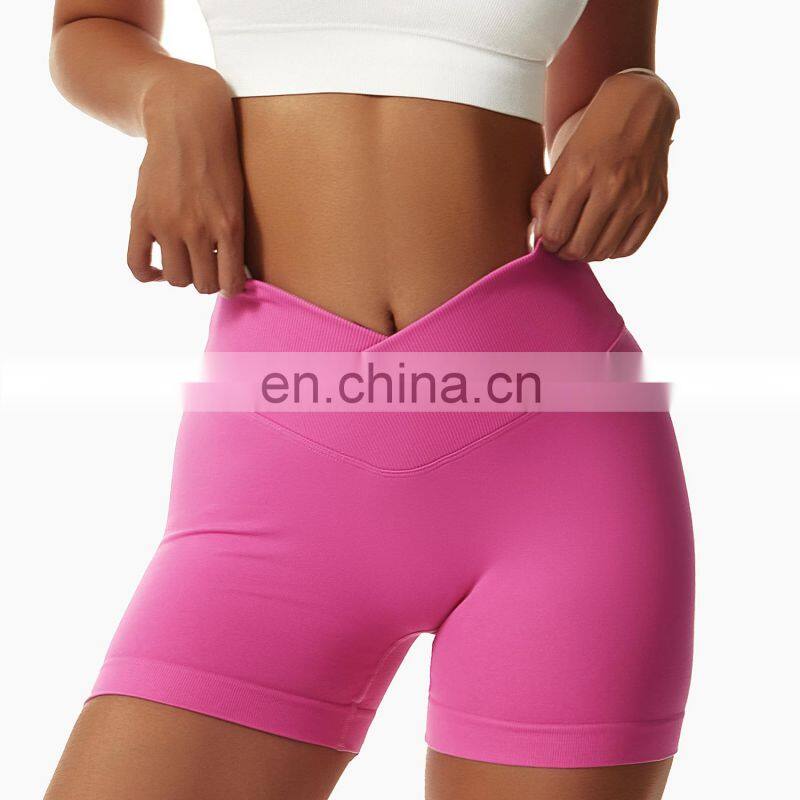 Custom Logo Compression V Waist Yoga Scrunch Butt Lift Booty Gym Shorts Lady Fitness Workout Running Sports Activewear For Women