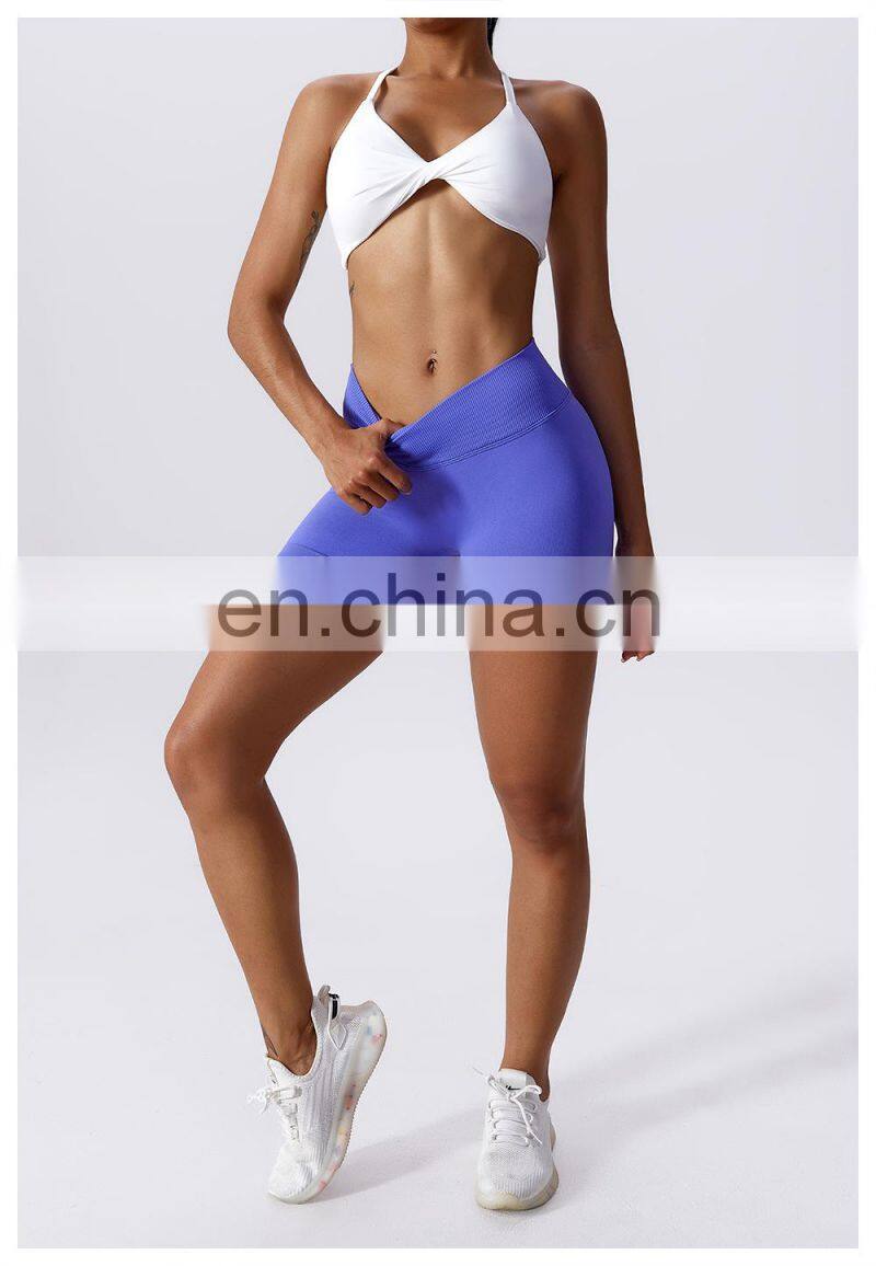 Wholesale Ribbed Seamless Straps Workout Sports Bra High Waist Butt Lift Leggings Shorts 2/3 Piece Women Yoga Gym Fitness Sets
