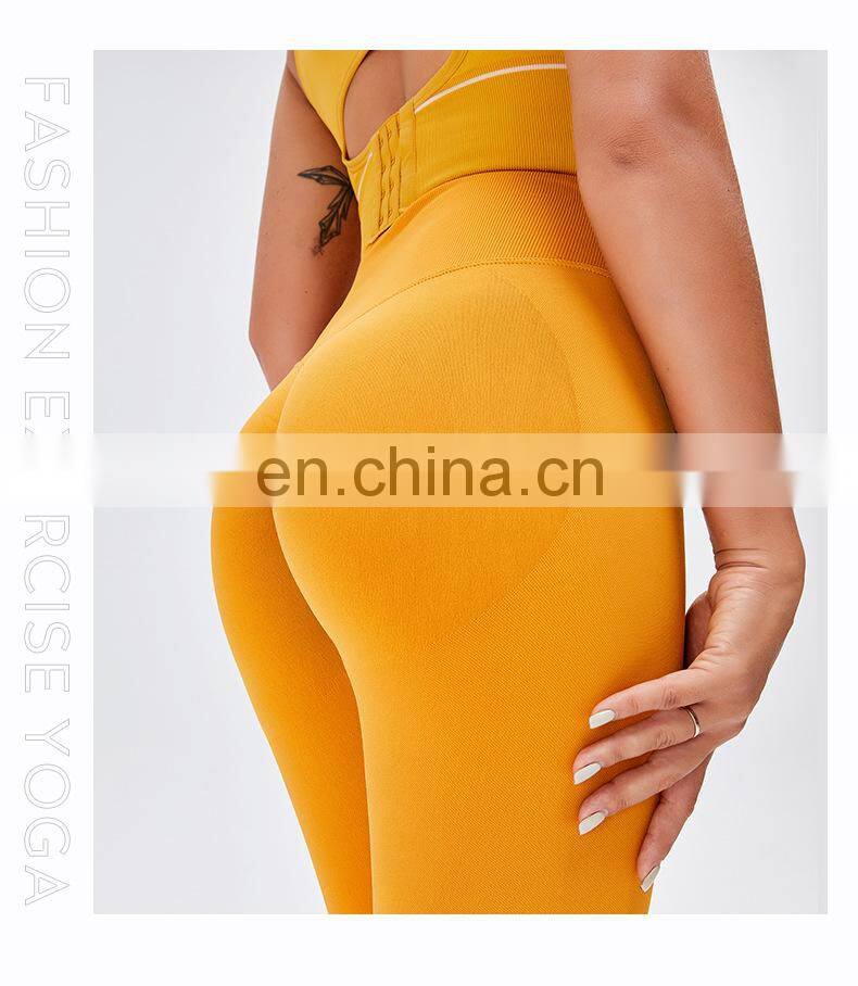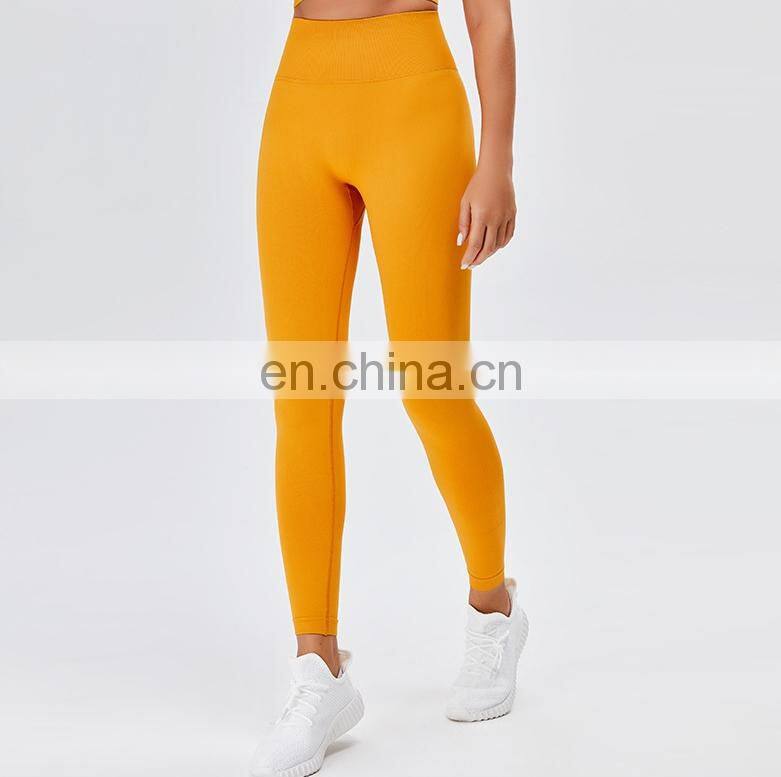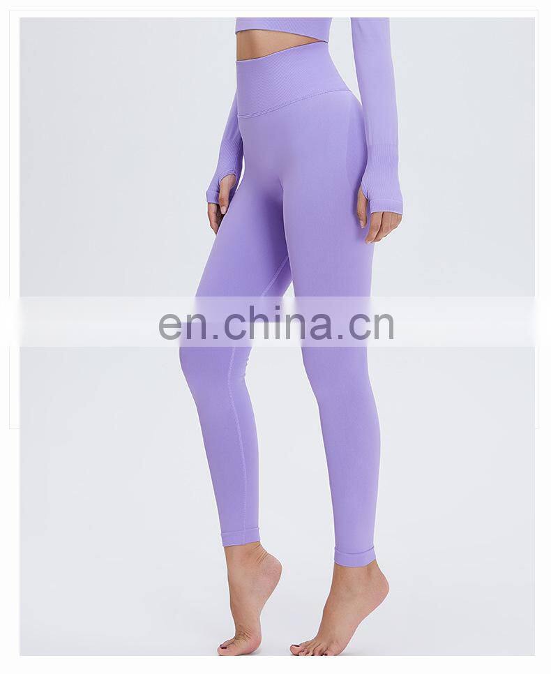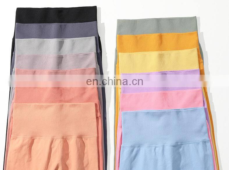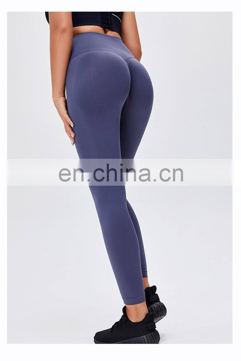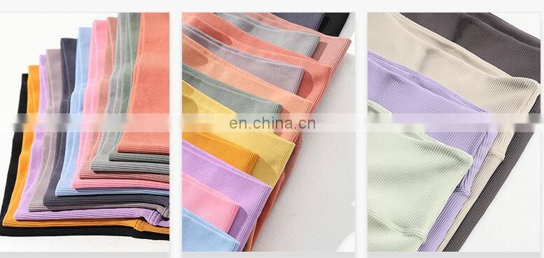 Custom Quick Dry Breathable Running Women Yoga Pants Fitness Leggings Side Ribbed High Waist Scrunch Butt Seamless Yoga Leggings