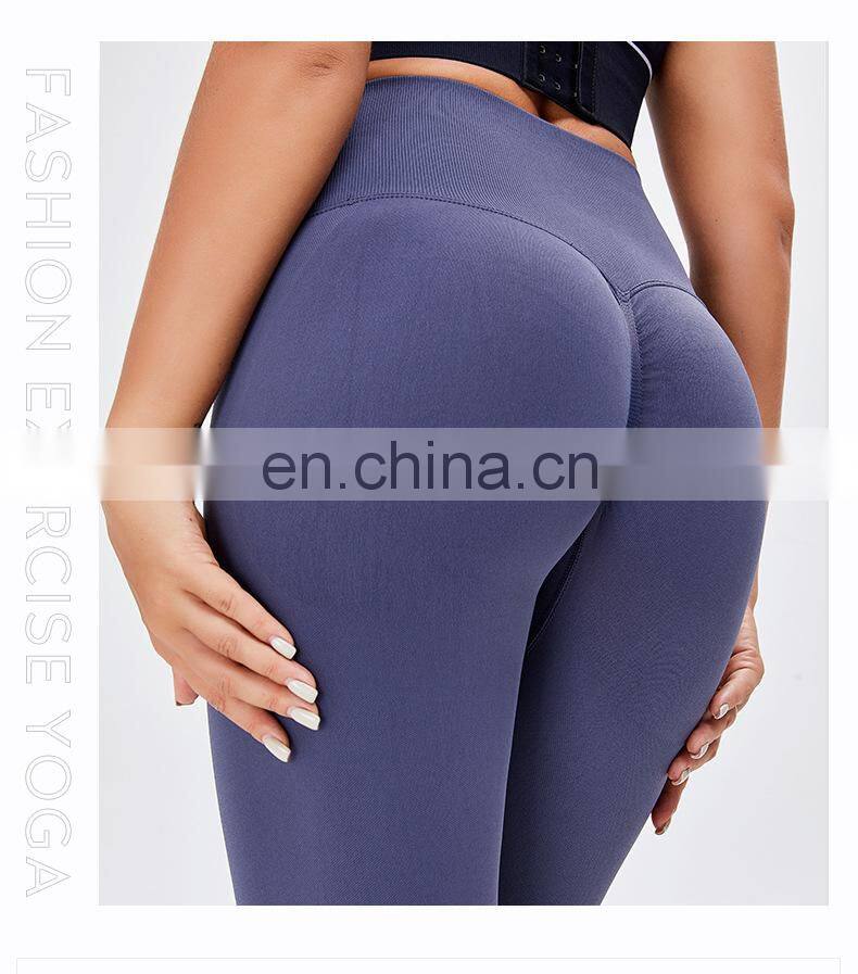 Custom Push Up Elastic Leggings Yoga Pants High Waist Scrunch Butt Fitness V Cross Waistband Seamless Yoga Leggings For Woman