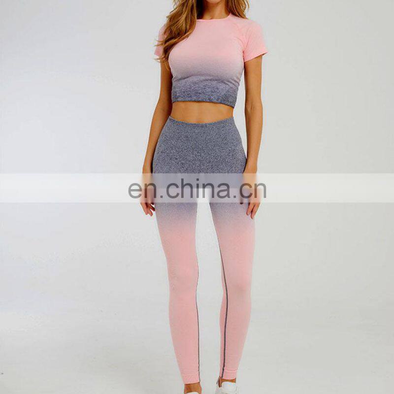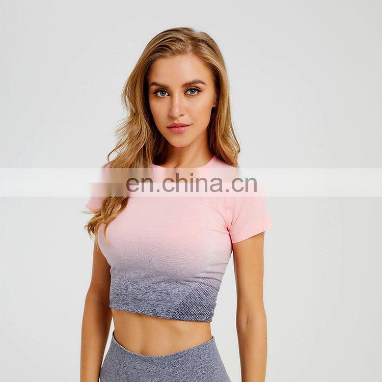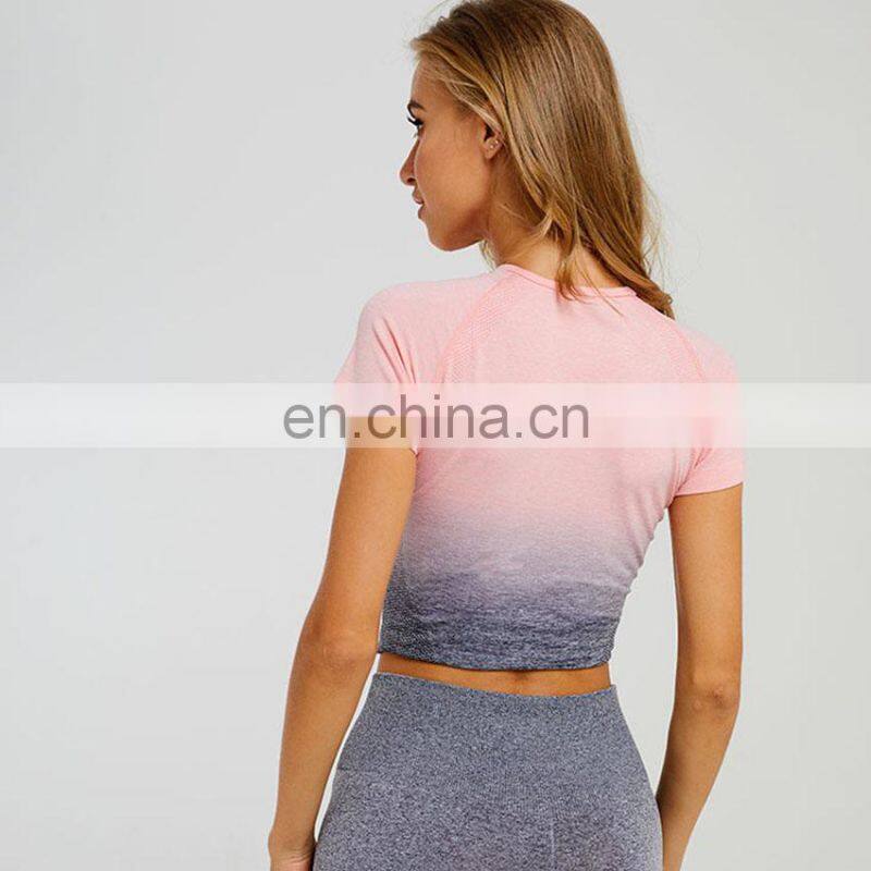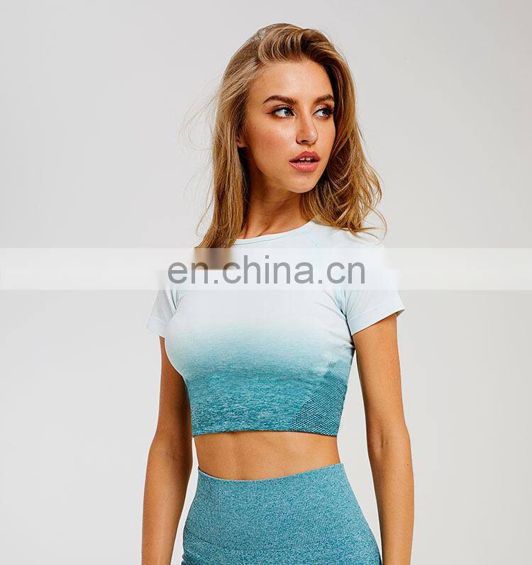 Wholesale Women Seamless Gradient Crop Top Fitness Yoga Top Sports Short Sleeve Yoga Tops
