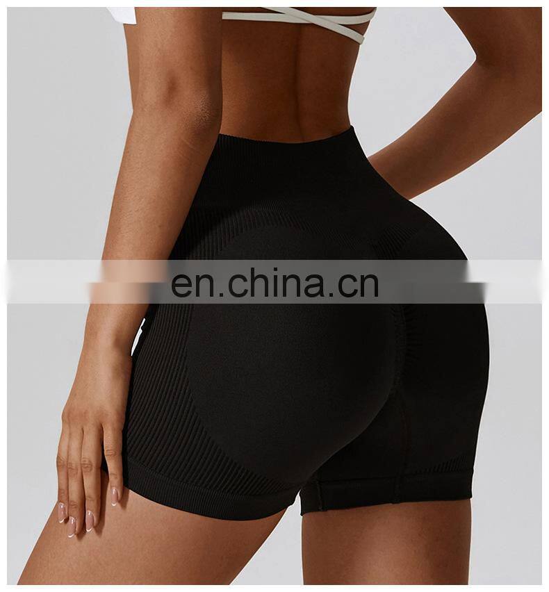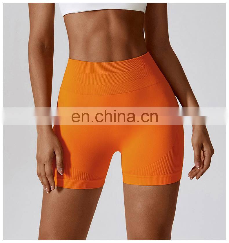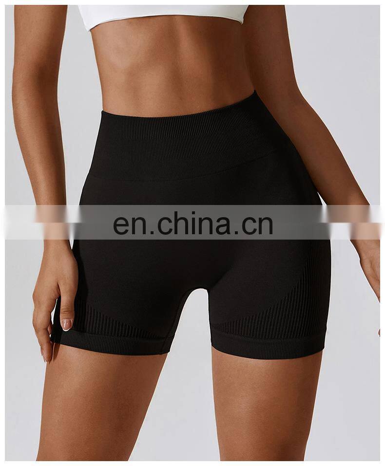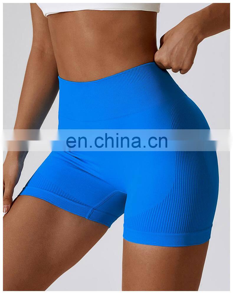 Custom Quick Dry Running Sportswear Yoga Shorts Womens Side Ribbed Butt Lifting High Waist Seamless Fitness Gym Yoga Shorts