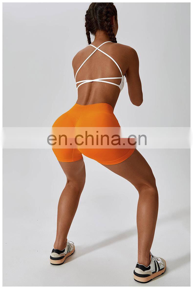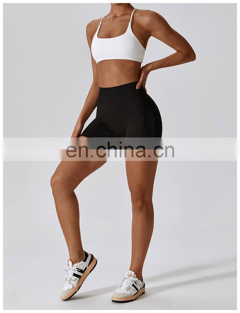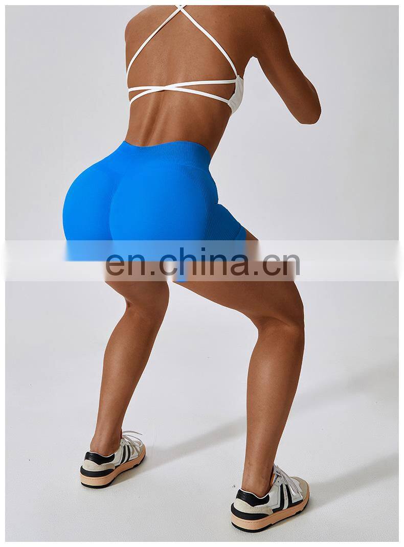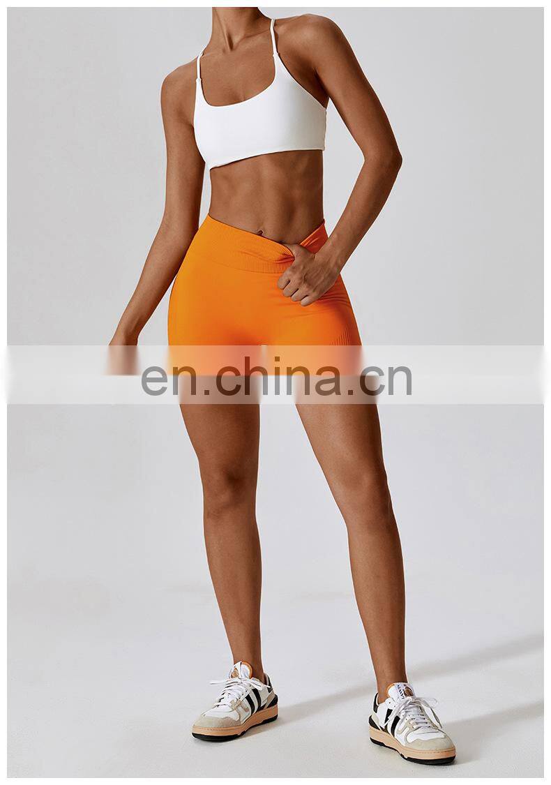 Custom Quick Dry Running Sportswear Yoga Shorts Womens Side Ribbed Butt Lifting High Waist Seamless Fitness Gym Yoga Shorts