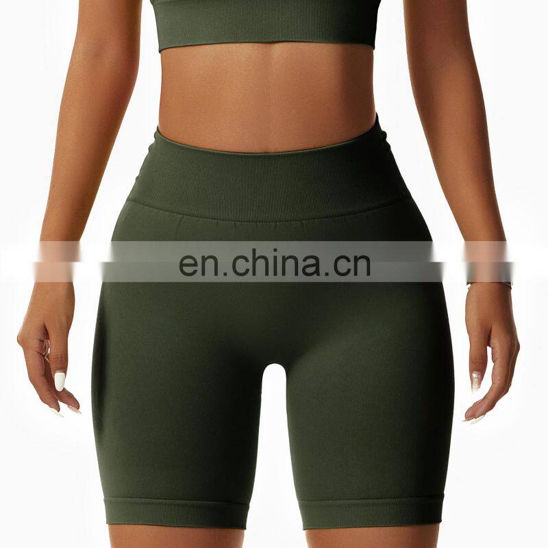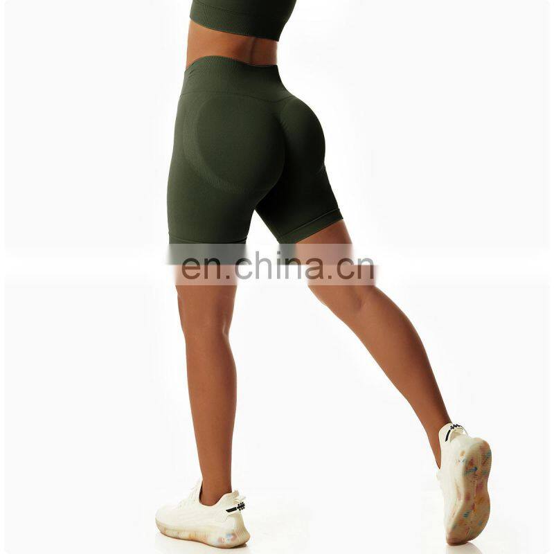 Quick Dry V Waist Scrunch Butt Biker Shorts Custom Logo Running Sports Pants Gym Fitness Leggings Women Seamless Yoga Shorts