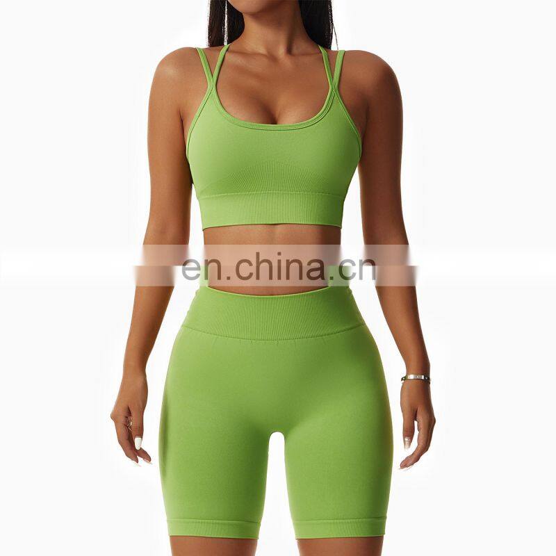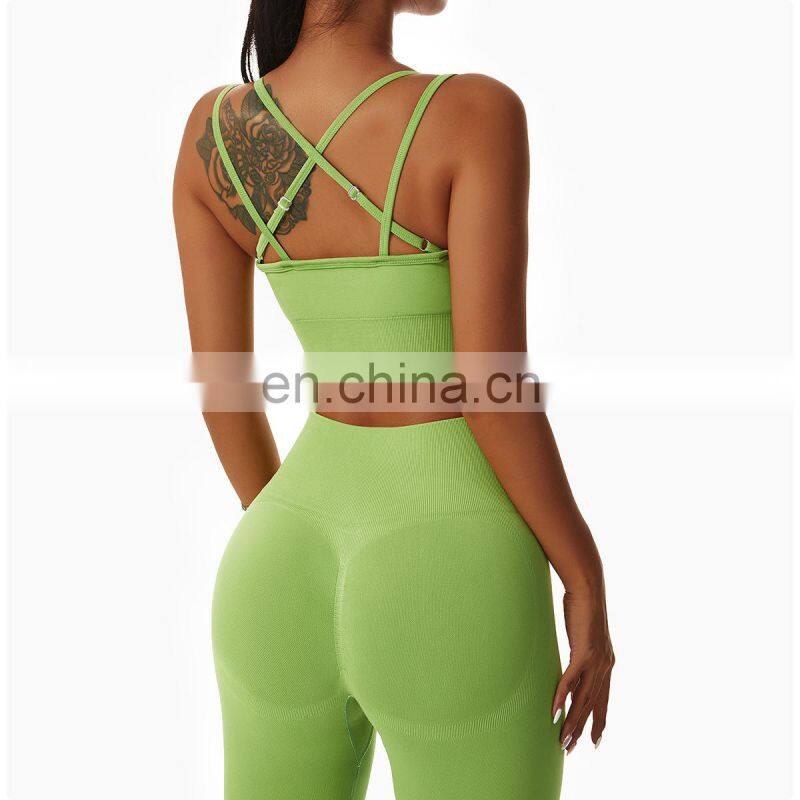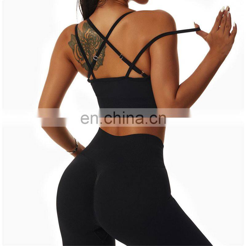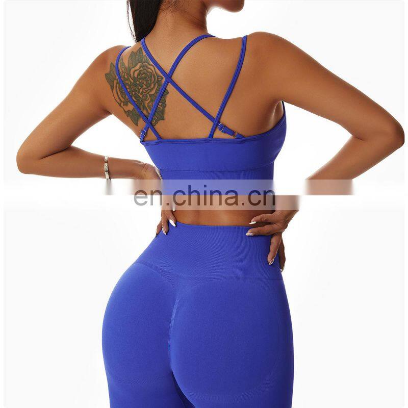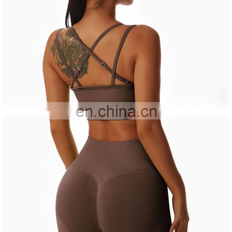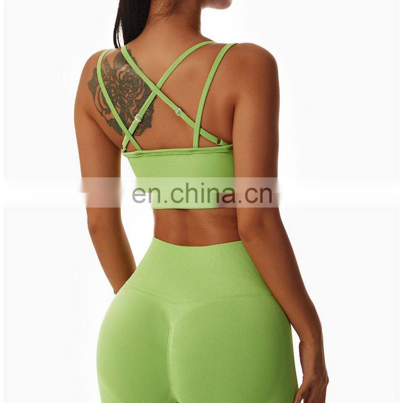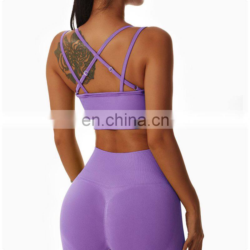 Wholesale Sports Bra Breathable Adjustable High Elastic Cross Back Bras Running Fitness Yoga Top Seamless Sports Bra For Women