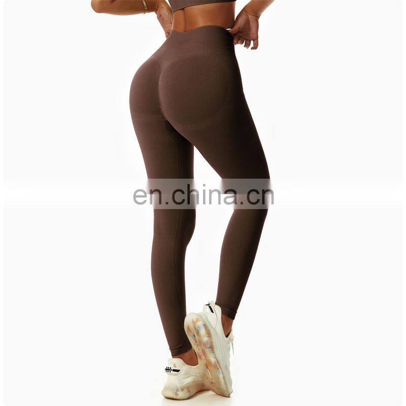 Custom Peach Hip V-Arc Waisted Running Sports Leggings Scrunch Butt High Waist Fitness Pants Seamless Yoga Leggings For Women