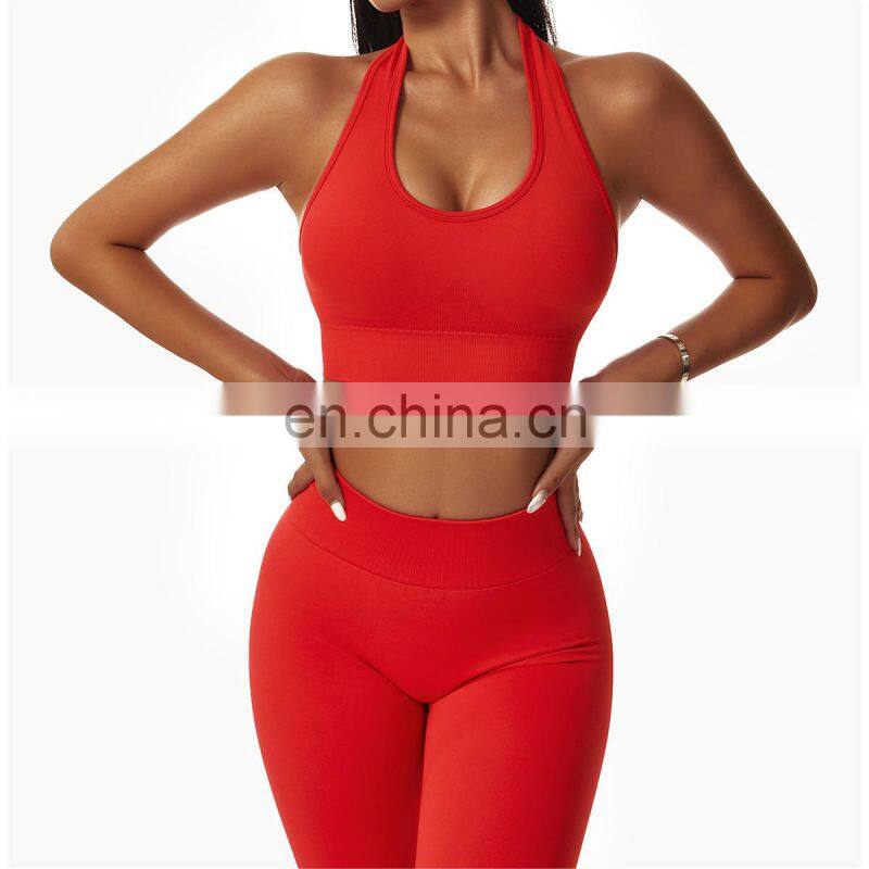 2024 New Yoga Clothing Quick Dry Outdoor Running 2 Piece Suit Sport Bra Flare Leggings Gym Fitness Sets Women Seamless Yoga Set