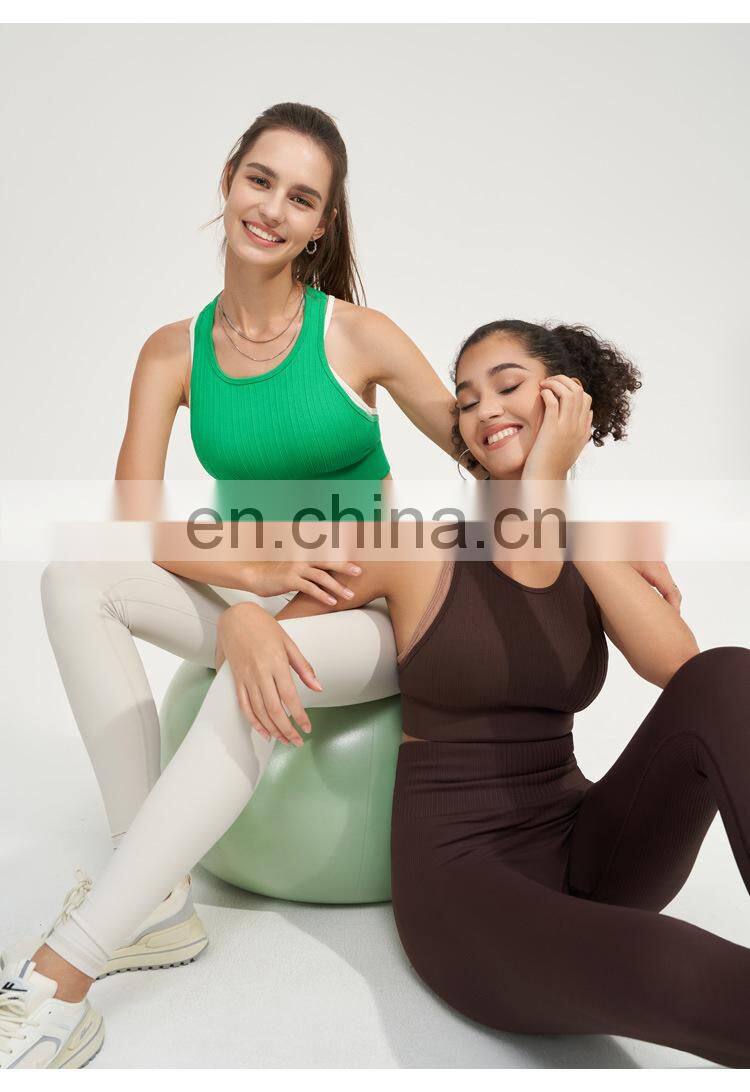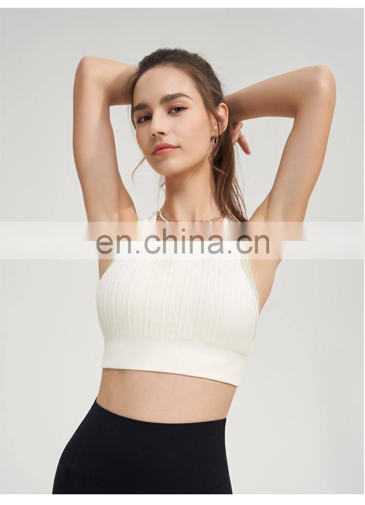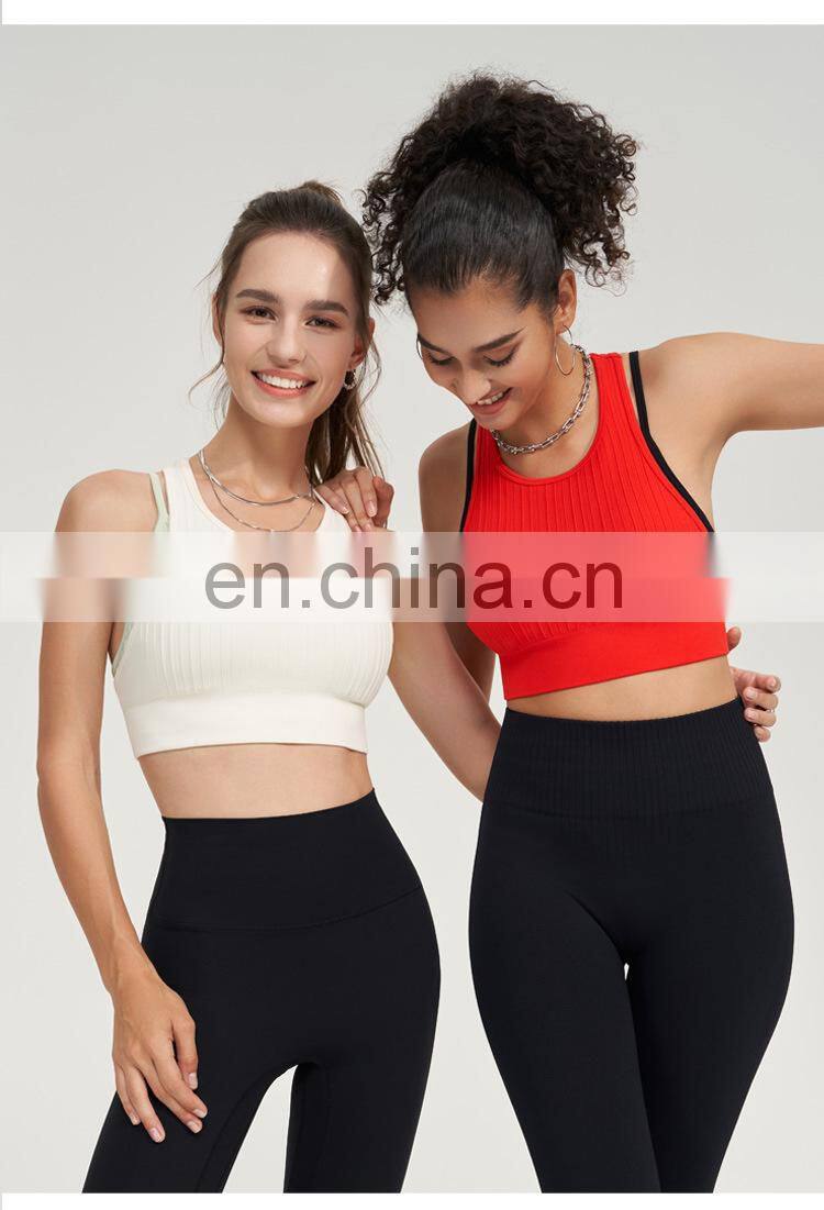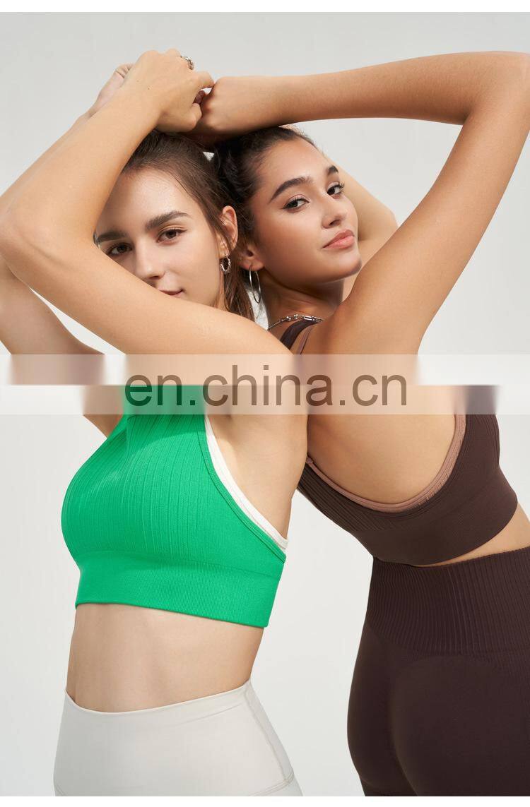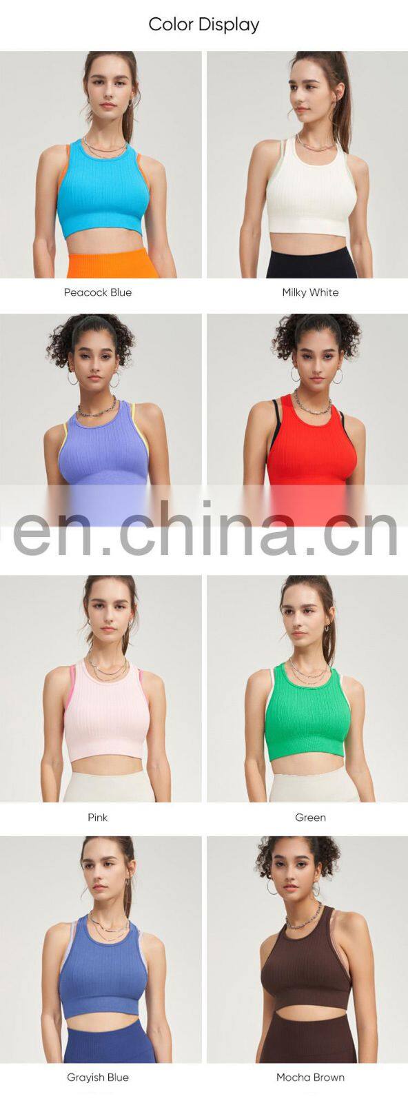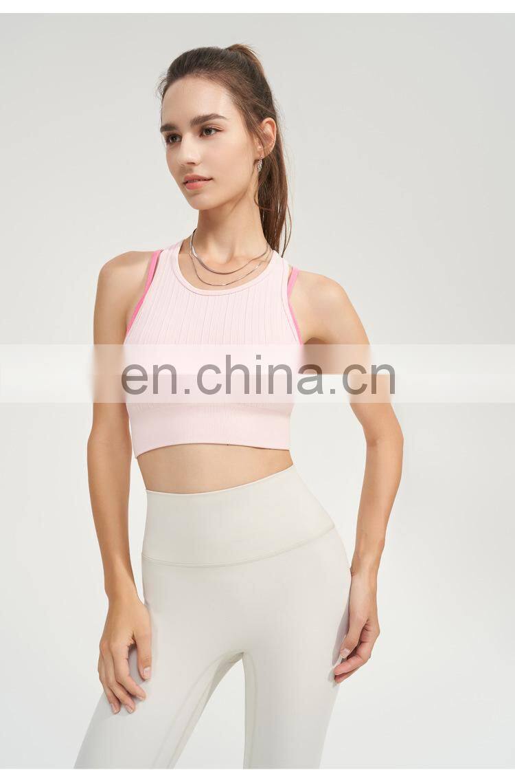 New Contrast Sexy Fake Two Pieces Shockproof Racerback Sports Bras Gym Fitness Tank Top Yoga Crop Top Seamless Sports Bra Women
