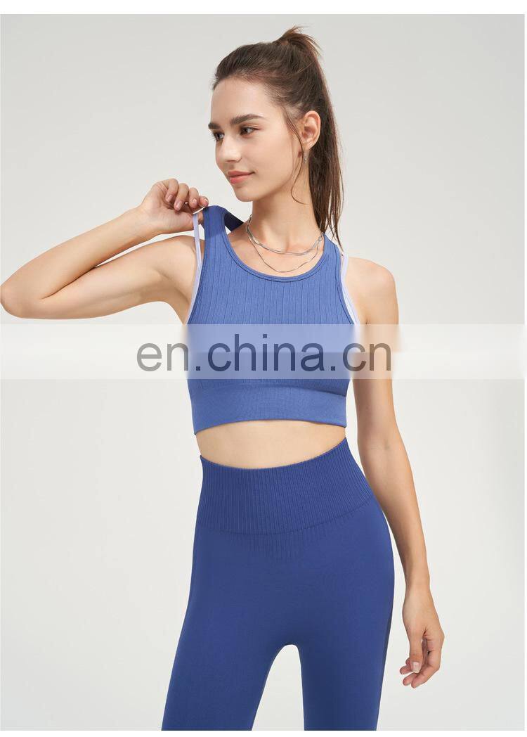 Home > Products > Seamless Sets / Clothing > New Contrast Sexy False Two Pieces Shockproof Racerback Sports Bras Gym Fitness Tank Top Yoga Crop Top Seamless Sports Bra Women
